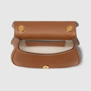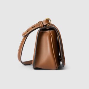 The new Gucci Blondie bag, whose distinctive logo first appeared in the House’s collections in the early 1970s, weaves together past and present in a fusion of nostalgia and modernity. This mini shoulder bag with an adjustable shoulder strap is crafted from brown smooth leather.