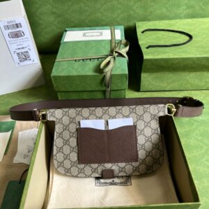 The Gucci Blondie series reinterprets the interlocking double G logo with geometric shapes, which runs through the “Exquisite Gucci” series. Gold-toned buckles give this new beige and ebony GG Supreme canvas belt bag a sophisticated retro feel, while a zippered compartment offers a versatile, contemporary style.