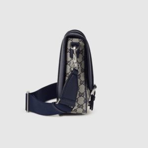 A selection of men’s bags, including cross-body bags, briefcases and totes have been reshaped with functional details. Featuring a light construction in a beige and blue colour palette, the GG motif defines each style made from the signature Original GG canvas. A dark blue leather trim completes this cross-body bag, complete with one zip pocket and flat pocket.