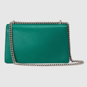The Dionysus shoulder bag with the now defining tiger head closure-a unique detail referencing the Greek god Dionysus, who in myth is said to have crossed the river Tigris on a tiger sent to him by Zeus. The closure is further enhanced with black crystals. The sliding chain strap can be worn multiple ways, changing between a shoulder and a top handle bag. Made in textured, resistant leather.