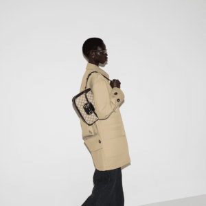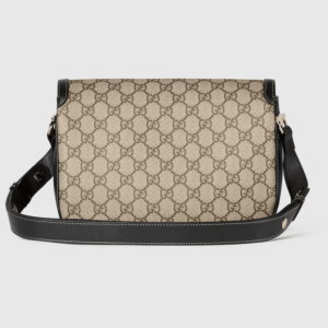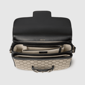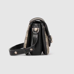The Gucci Horsebit 1955 Soft continues its equestrian-inspired design with the double ring and bar hardware, blending light gold-toned details and GG Monogram coated fabric, with a soft and sophisticated feel, on this small shoulder bag.