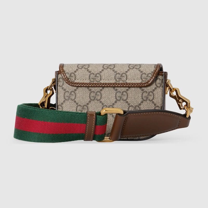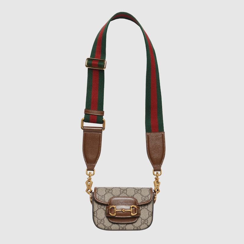 Inspired by archival designs, the world of Gucci Horsebit 1955 unifies the original details first introduced over six decades ago with a modern spirit, highlighting the Horsebit. Part of Gucci’s genetic code, the double ring and bar design has been established as one of the most distinctive elements among the House symbols borrowed from the equestrian world. The hardware defines this GG Supreme wallet. The style takes on a versatile feel with the addition of a Web strap in green and red.