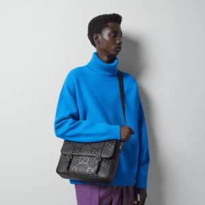 Working with a range of nature’s primary colors, Gucci’s enduring designs present new iterations season after season. For Cruise 2024, black enriches the latest leather goods selection with a neutral shade that works harmoniously with other colors. This messenger bag portrays the shade as part of an emblematic jumbo GG leather.