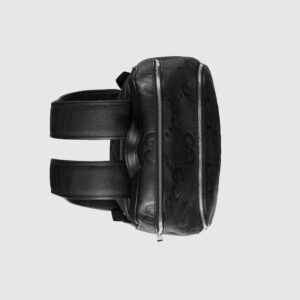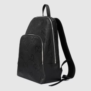 The all-black jumbo GG design continues for Cruise 2024 atop a selection of leather accessories. A reinterpretation of Guccio Gucci’s initials, the motif is an evergreen of the House that appears prominently in maxi size for an eye-catching logo feel. This backpack in the emblematic leather features an inside and outside pocket with easy wear shoulder straps.
