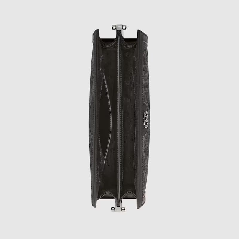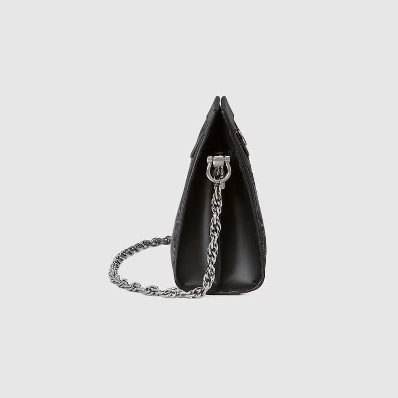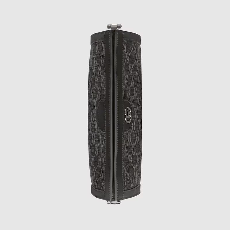GG canvas, a recognisable design of the House, continues to adorn the signature handbag silhouettes. It is synonymous with Gucci’s Ophidia line in particular, this season it is presented in black and grey as the colour sheds new light on classic designs.
