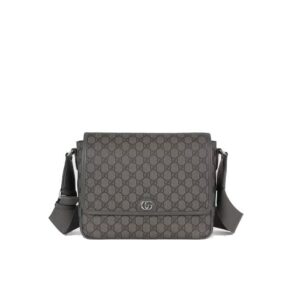 The GG Supreme Tender canvas, with its soft material and durable characteristics, lends itself well to the men’s accessories line, adding a modern feel to established House designs. This Ophidia messenger bag is presented in a grey and black variation of the GG Supreme Tender canvas, complete with the Double G hardware.