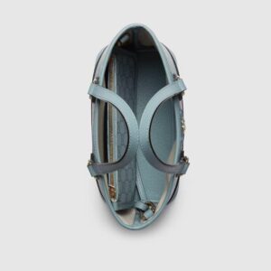 The Ophidia line is further elevated through new sizes and styles, like this mini tote bag which has a detachable pouch and detachable leather shoulder strap, allowing for versatile wear. The dusty blue GG Supreme canvas is complete with light gold-toned Double G hardware.