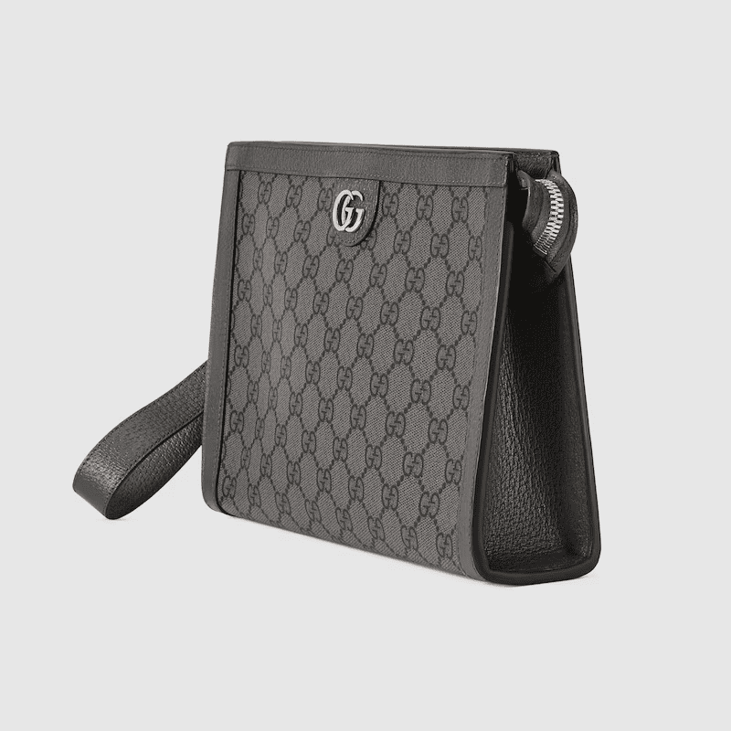 Gucci heritage meets contemporary design with the continuation of Ophidia. Crafted in a grey and black GG Supreme canvas, this pouch silhouette is defined by the palladium-toned Double G hardware.