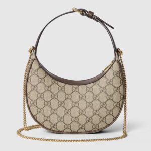 The world of Ophidia continues to evolve, incorporating new shapes and materials each season. Guccio Gucci’s everlasting monogram continues to enrich new designs with a logo feel. This super mini shoulder bag is presented in the historical beige and ebony GG Supreme canvas, complete with the Double G hardware.