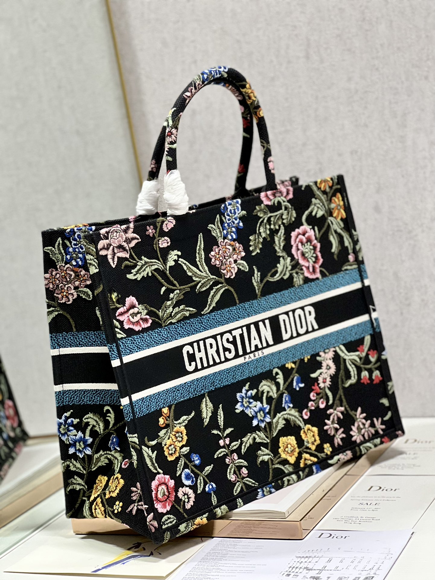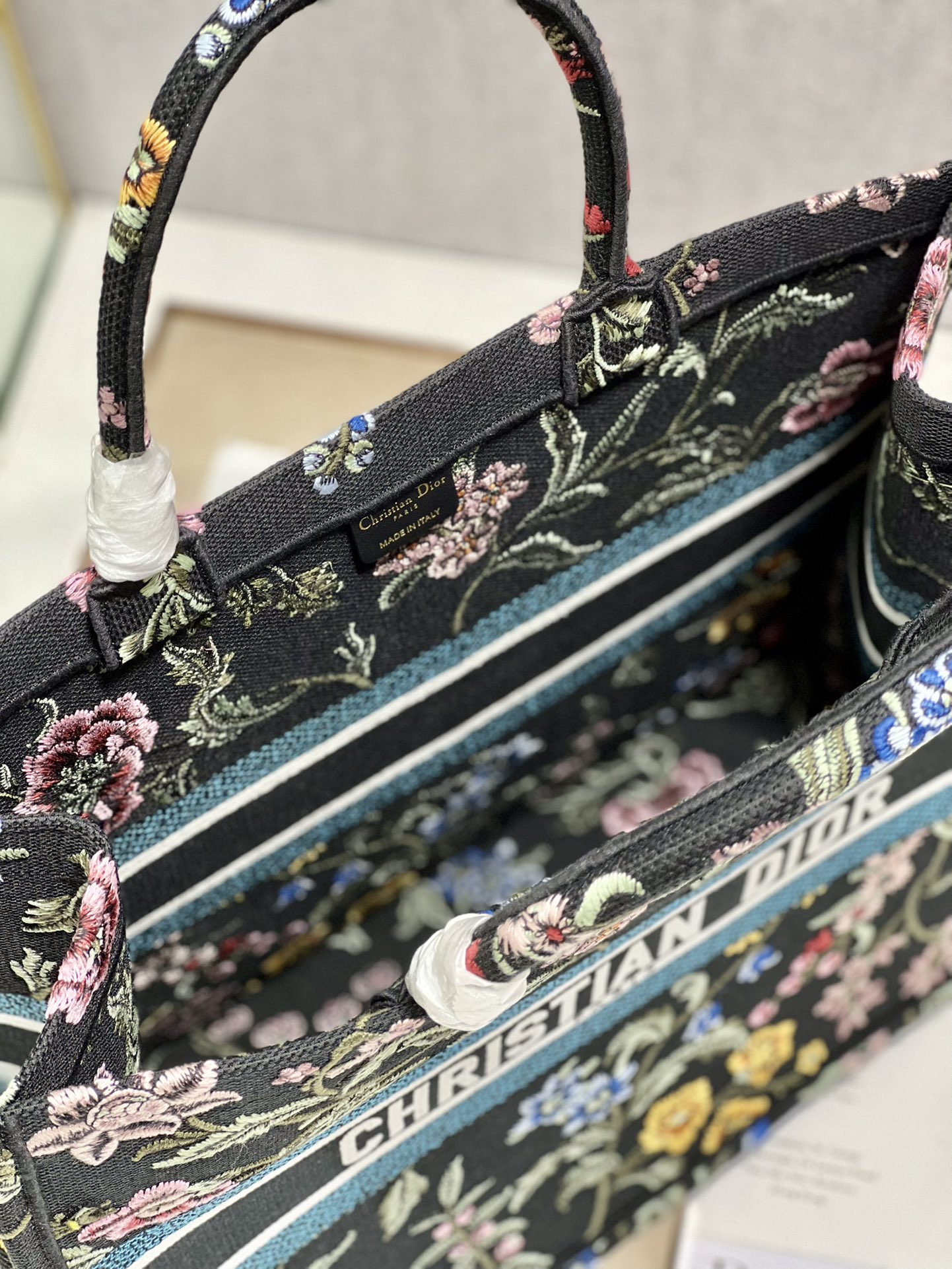 Introduced by Maria Grazia Chiuri, Creative Director of Christian Dior, the Large Dior Book Tote Bag has become a staple of the Dior aesthetic. Designed to hold all daily essentials, the style is fully embroidered with a multicolor Dior Petites Fleurs motif, a romantic and vibrant homage to Mr. Dior’s passion for florals. Adorned with the Christian Dior Paris signature on the front, the small tote exemplifies the House’s signature savoir-faire and may be carried by hand.