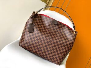 Elegant Damier Ebene canvas combines lightness with ample capacity for a form-fitting fit that’s perfect for everyday travel. Leather details and glossy metal hardware reveal the brand’s charm, and the soft flat handle allows for a comfortable yet trendy shoulder style. Magnetic closure and zippered interior pocket keep items safe.