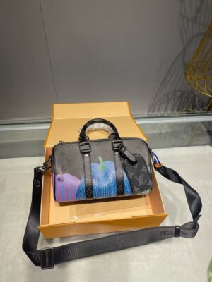 Louis Vuitton’s iconic Keepall collection is now updated with a new mini design. Monogram Macassar canvas is dyed in one of Virgil Abloh’s signature bright colors. The reinforced side straps and removable leather nameplate continue the iconic elements. It is paired with double handles and shoulder straps, making it an eye-catching choice for urban life.