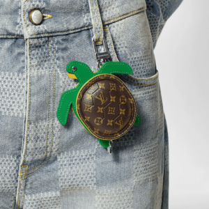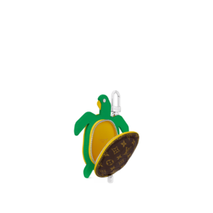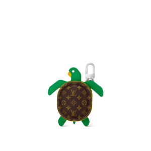 Introducing the LV Turtle pouch, a fun, functional accessory. Made from Monogram canvas, colorful leather and a silver-tone snap hook, the friendly creature can be attached to a bag as a decorative signature talisman. And that’s not all: the turtle’s shell is a convenient place to stash earbuds while on the go.