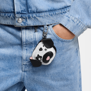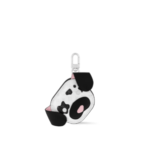 The LV Dog Bag Charm is a delightful decoration that also serves as a pouch to hold earphones or similarly small items. The white face of the dog is covered in a tonal Monogram, complete with floppy black ears, a light pink nose, and silver-studded eyes. The end result makes a thoughtful gift and an adorable addition to any keychain or bag.