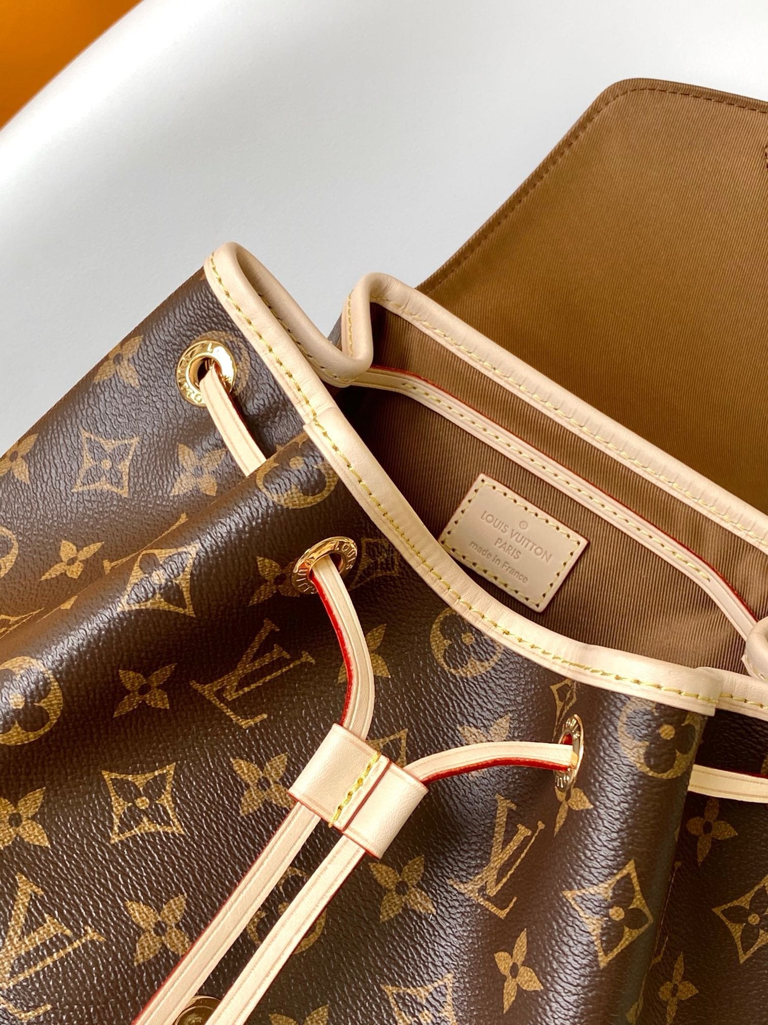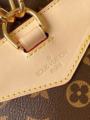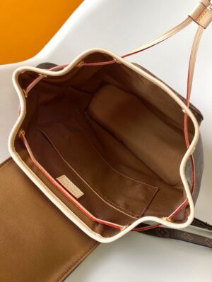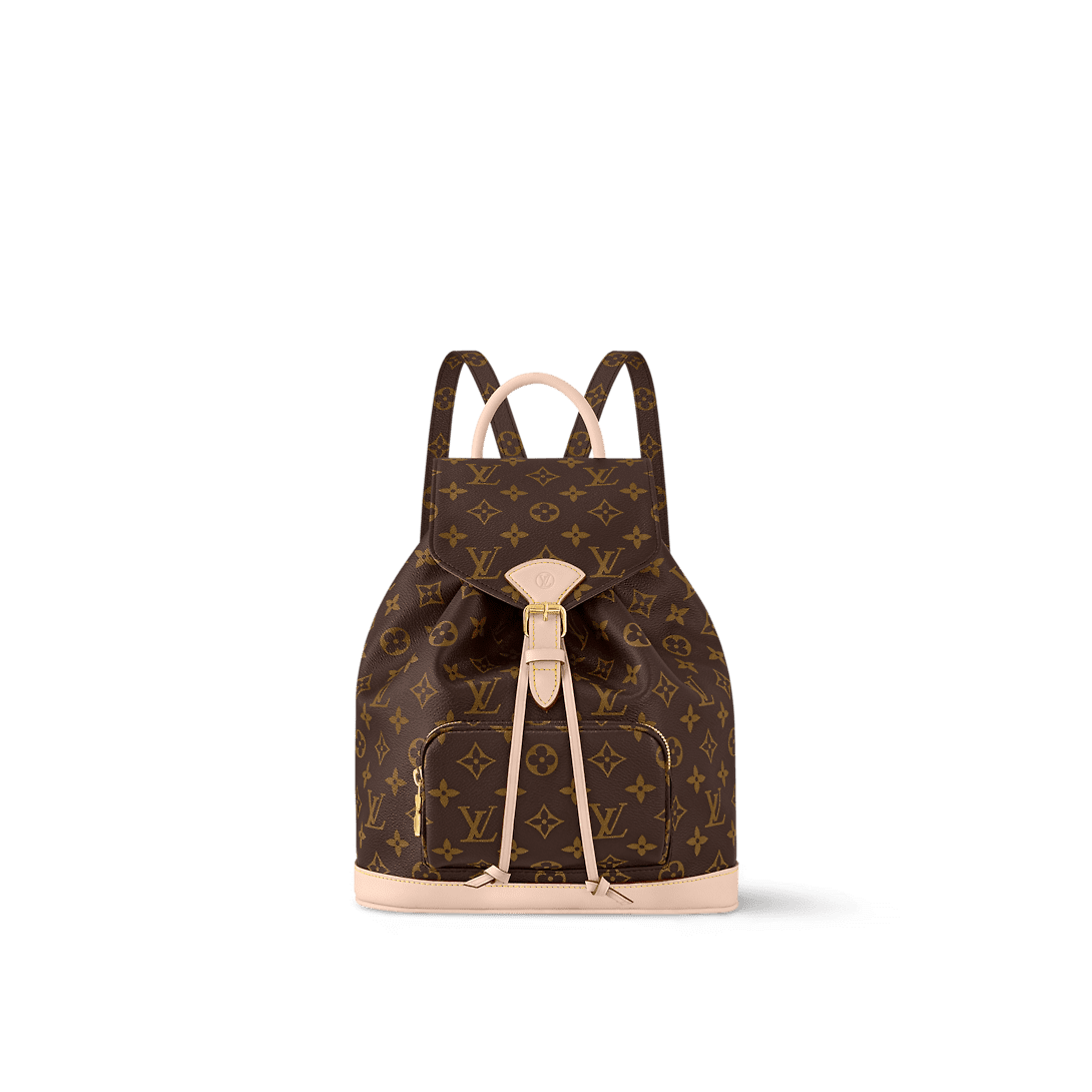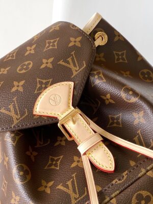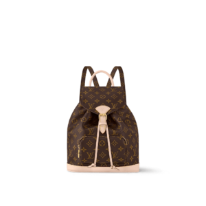 Nicolas Ghesquière traces his origins to the Montsouris bag, which was launched in 1994. This small backpack is made of Monogram coated canvas and calf leather trim. The leather handles and adjustable leather shoulder strap allow for multiple carrying options, while the drawstring and magnetic clasp ensure secure storage.