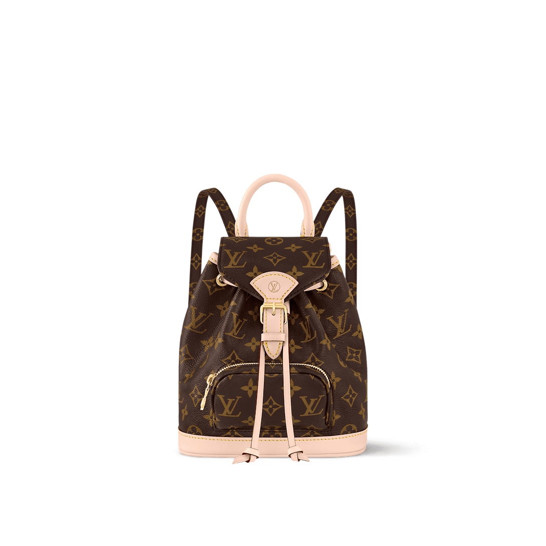 This Montsouris Mini Backpack is crafted in Monogram coated canvas with cowhide trims and a cowhide base. The top handle and adjustable leather shoulder strap allow for stylish travel, while the drawstring and magnetic closure ensure secure storage.