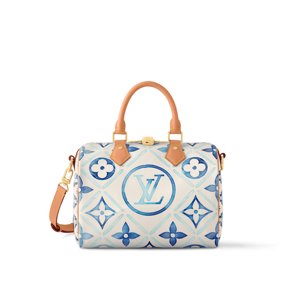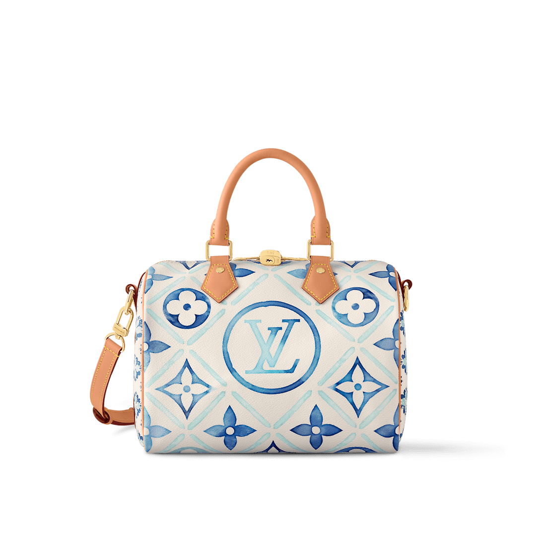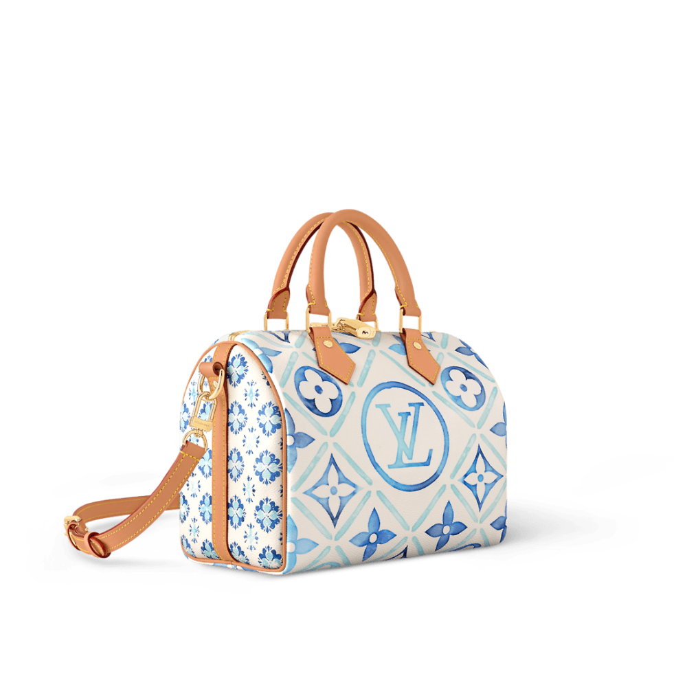 Inspired by the Speedy travel bags of the 1930s, this Speedy Bandoulière 25 bag features a classic silhouette in Monogram Tiles canvas for a fresh summer feel. The prints on the bag and lining evoke the beautiful tiles of Lisbon, and the central LV Circle logo adds a brand touch. The