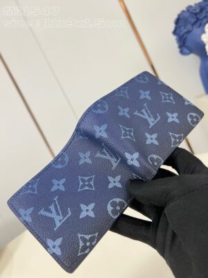 Monogram Gradient coated canvas brings a fresh feel to the Multiple Wallet. The gradient print on the canvas, with the iconic Monogram Flowers and LV Initials slowly fading away, is classic and modern at once. A slim but functional wallet, the Multiple slips into any pocket.
