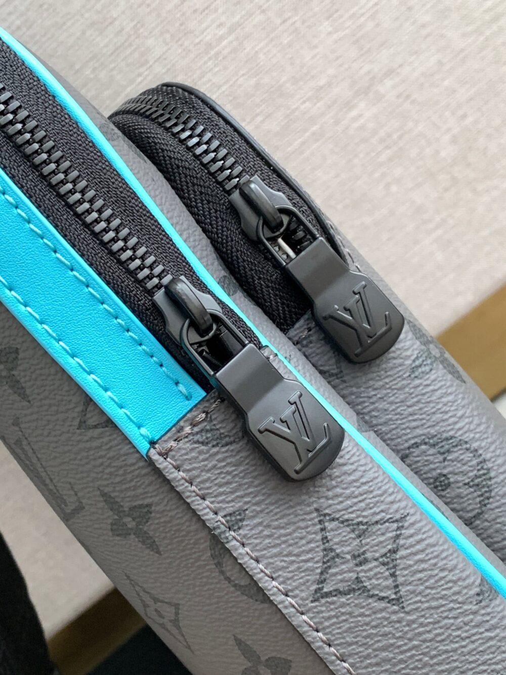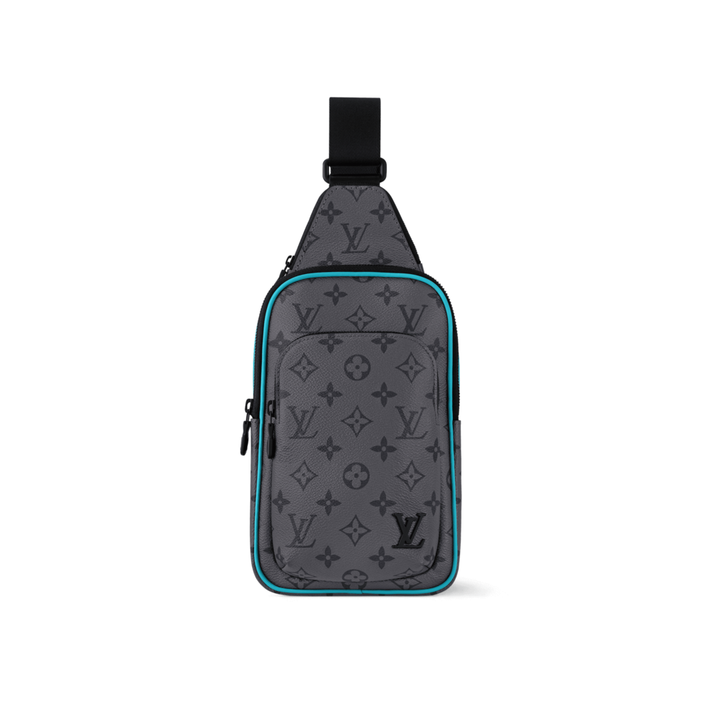 The Avenue Slingbag PM is made from Monogram Eclipse Reverse canvas, with turquoise-color leather trim. An alternative to the classic backpack, this cross-body bag features a zipped main compartment and a roomy front zipped pocket. And for those smaller items, there’s a triangular pocket where the strap meets the bag.