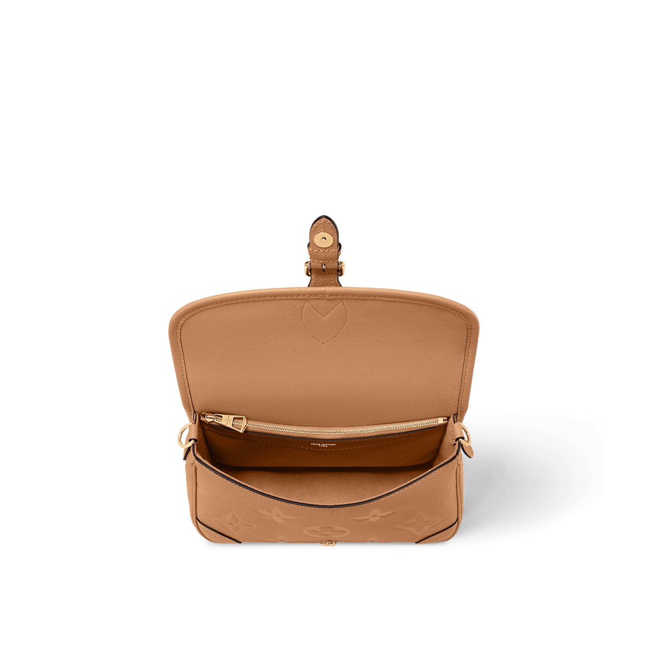 The Diane handbag exudes timeless sophistication, making it the perfect match for modern city wardrobes. This iteration showcases the House’s signature Monogram Empreinte leather elevated with gold-toned hardware and a contrasting textile strap. It is sized to fit everyday essentials, plus one or two makeup items. Carry it by hand, over the shoulder or wear it cross-body.
