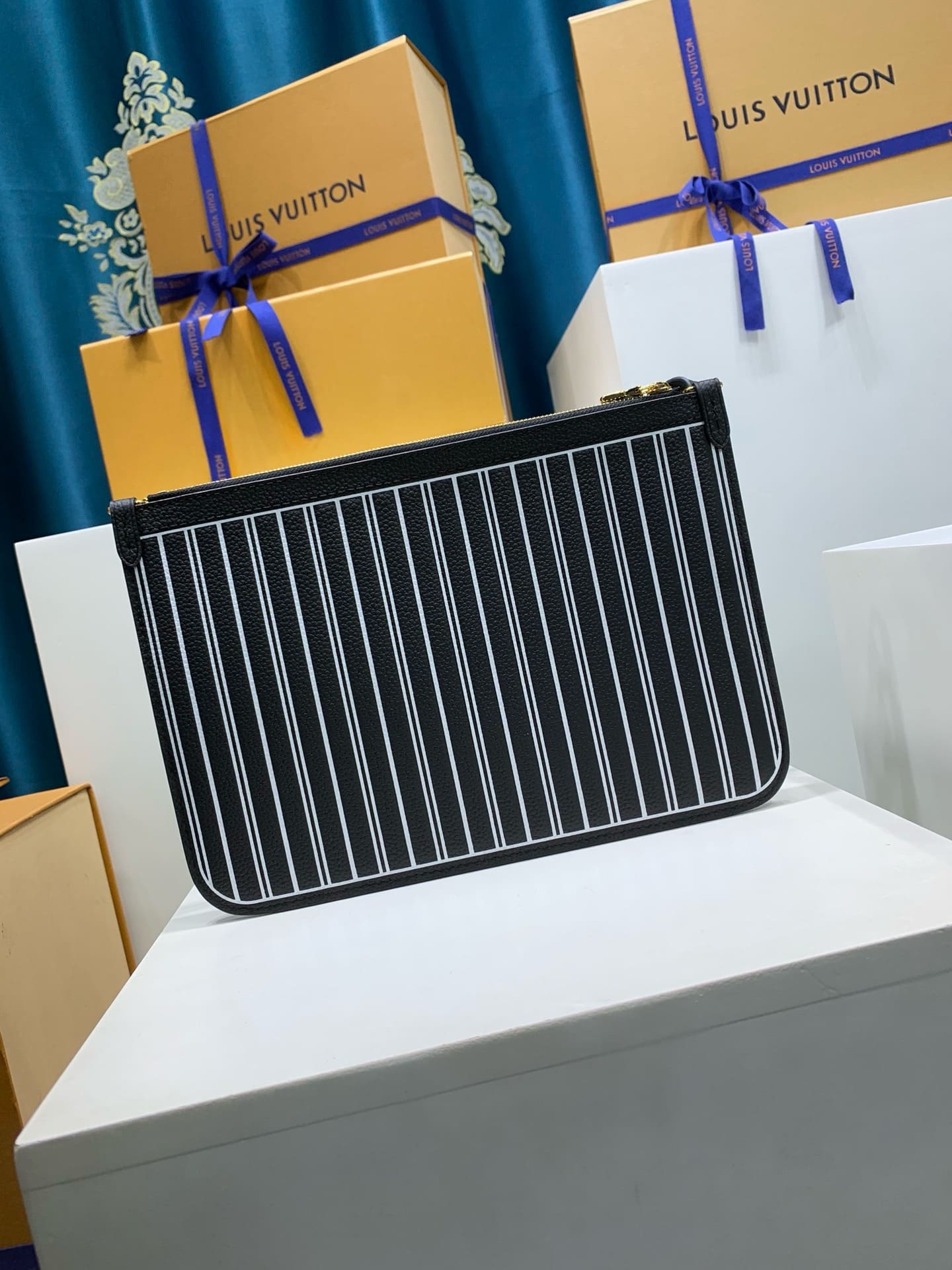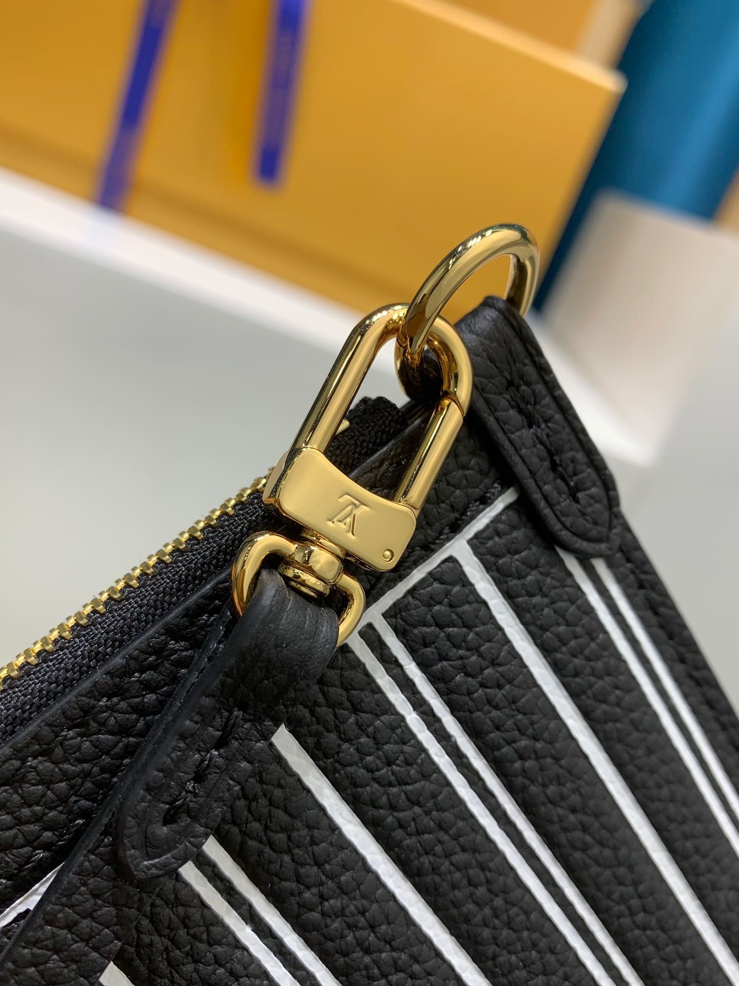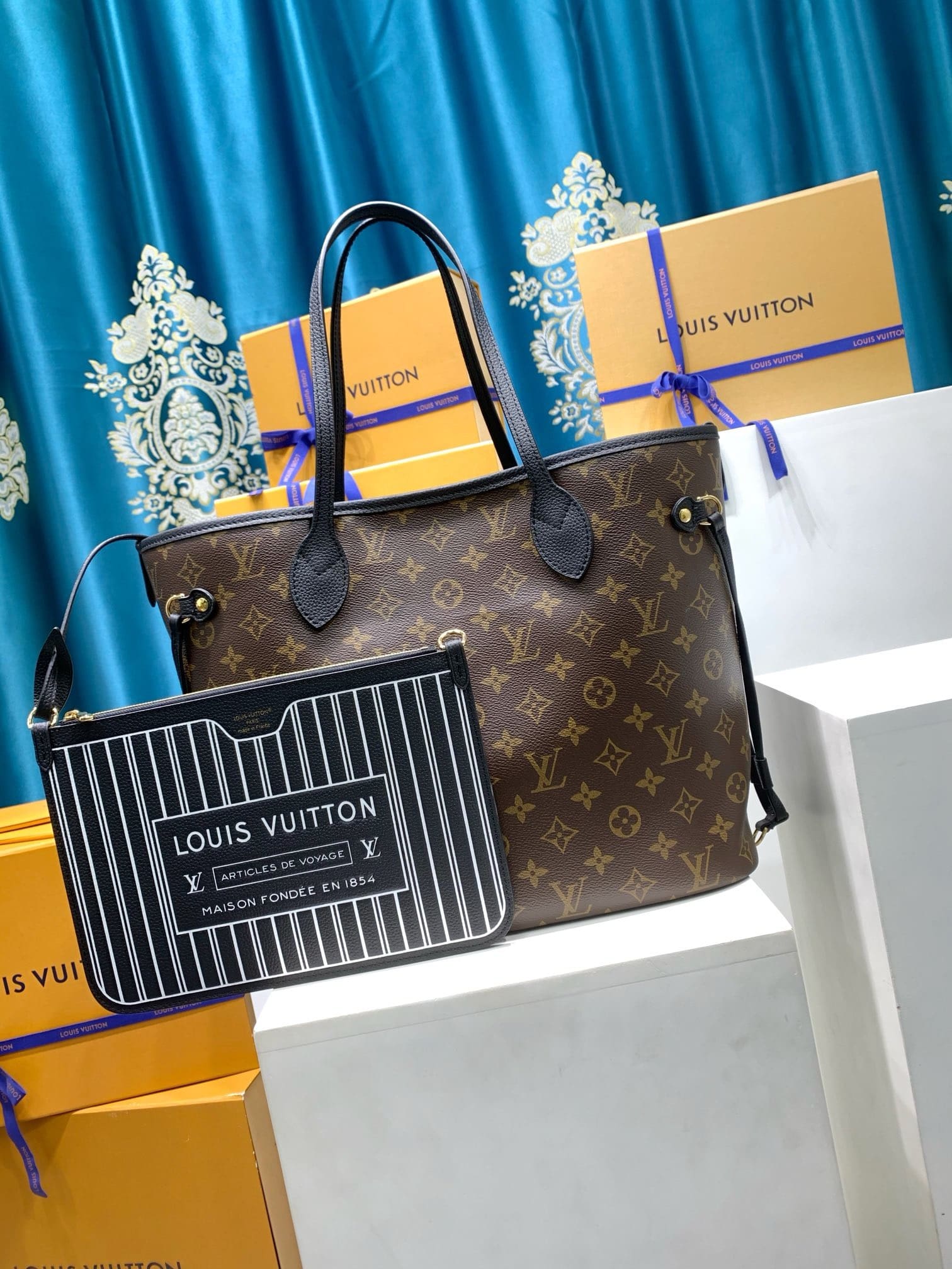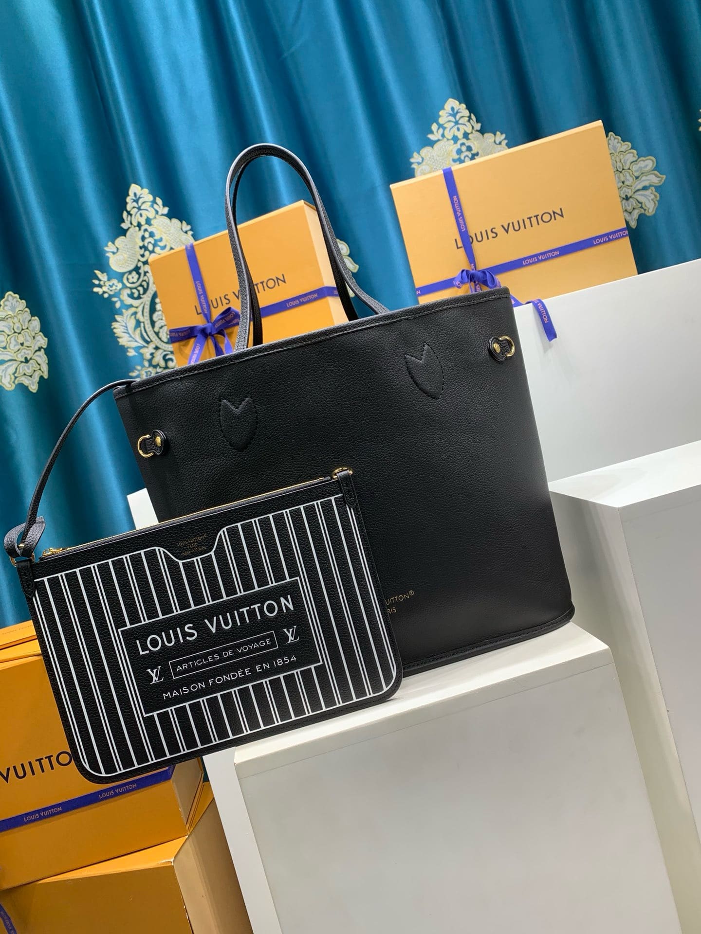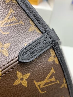 This versatile edition of the Neverfull Inside Out MM showcases a new reversible design. One side is crafted from signature Monogram canvas, and the other reveals grained leather. The iconic style also includes a removable pouch that can be attached as an exterior pocket or used as a petite standalone shoulder bag.