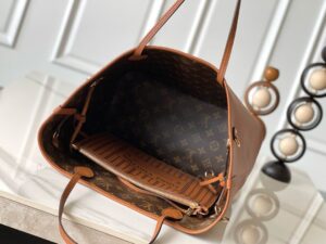 This versatile edition of the Neverfull Inside Out MM showcases a new reversible design. One side is crafted from signature Monogram canvas, and the other reveals grained leather. The iconic style also includes a removable pouch that can be attached as an exterior pocket or used as a petite standalone shoulder bag.