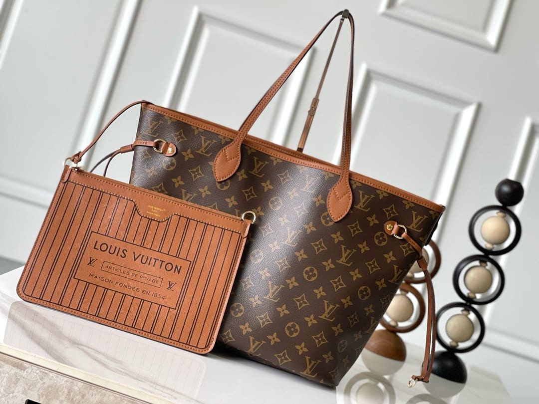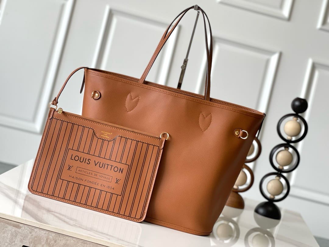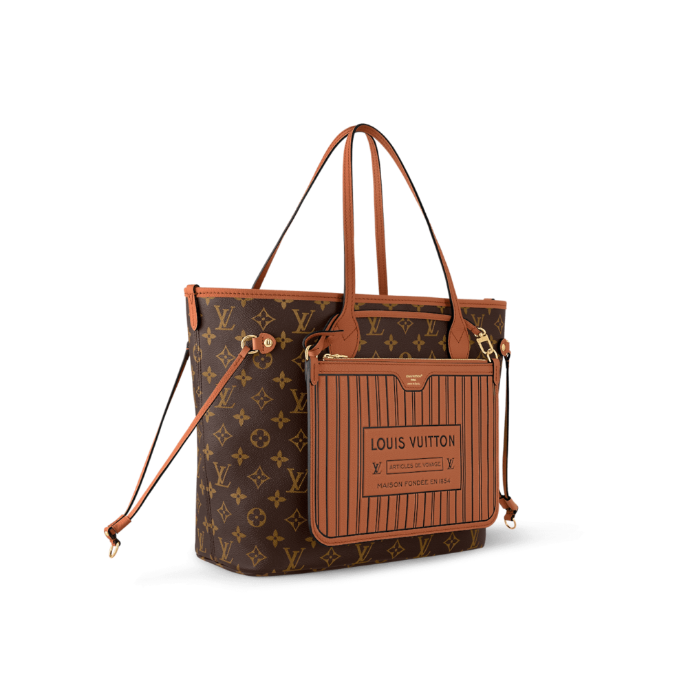 This versatile edition of the Neverfull Inside Out MM showcases a new reversible design. One side is crafted from signature Monogram canvas, and the other reveals grained leather. The iconic style also includes a removable pouch that can be attached as an exterior pocket or used as a petite standalone shoulder bag.