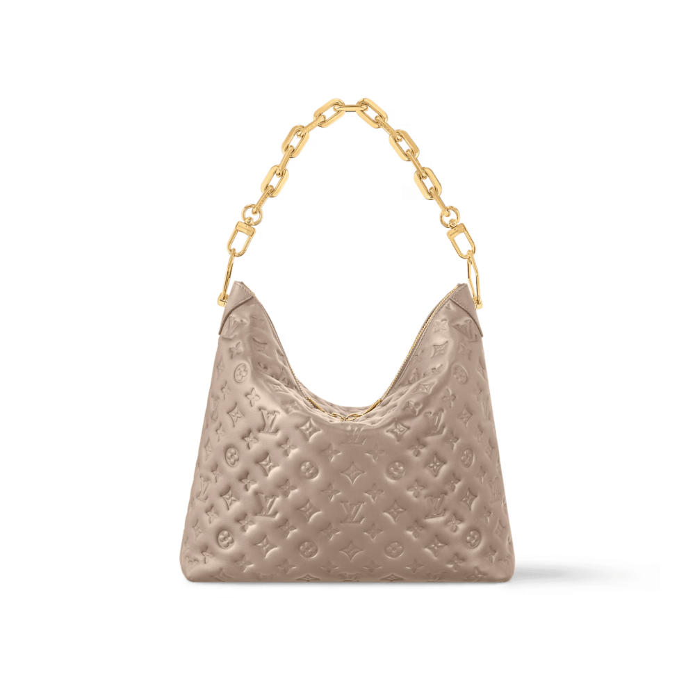 A statement addition to the Coussin line, this new Hobo model strikes the balance of fashionable and functional. Showcasing signature design details from the collection, it is crafted from smooth padded leather embossed with the House’s Monogram and has an iconic chunky chain accented with gold-toned hardware. The large removable textile strap offers multiple wearing options. This versatile piece also includes a removable zipped pouch and is sized to store a laptop.