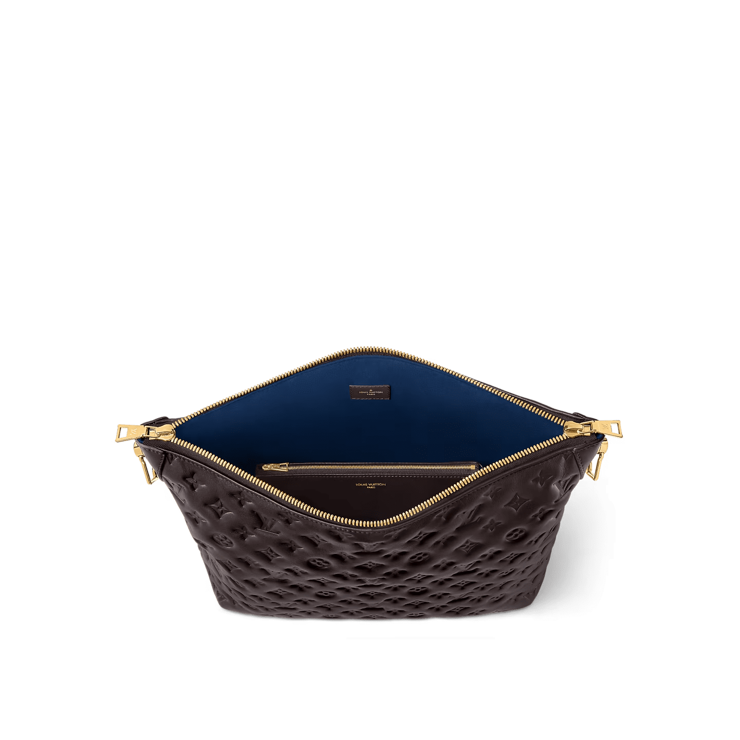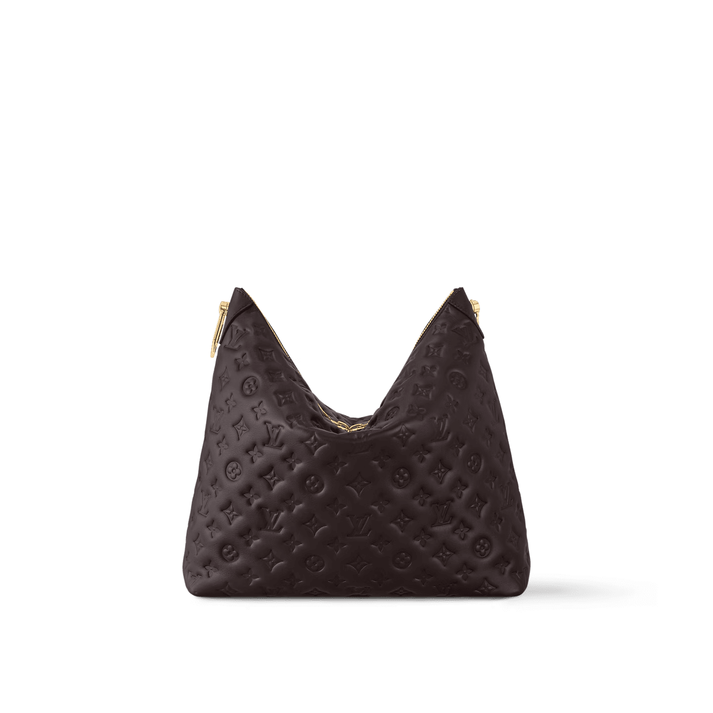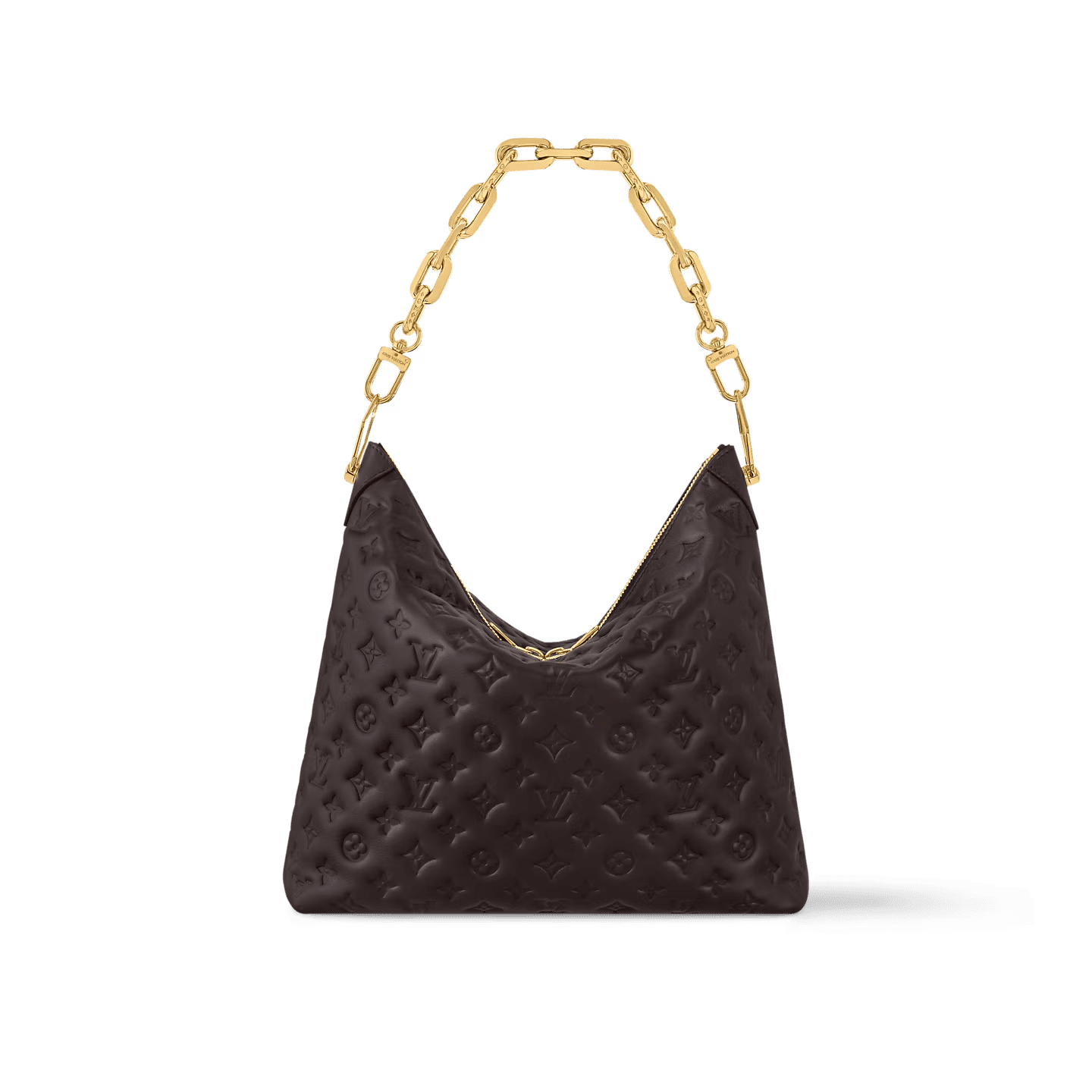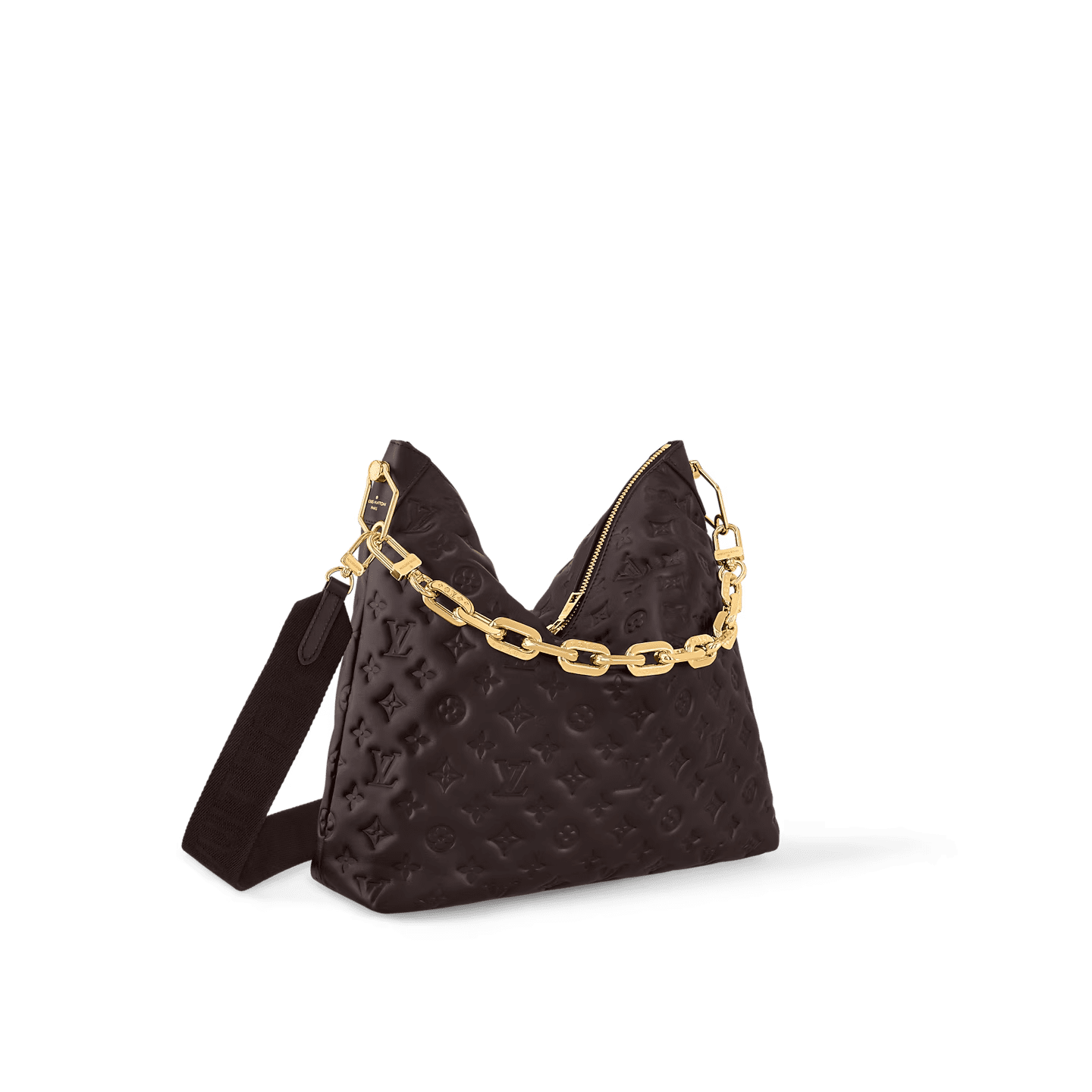 A statement addition to the Coussin line, this new Hobo model strikes the balance of fashionable and functional. Showcasing signature design details from the collection, it is crafted from smooth padded leather embossed with the House’s Monogram and has an iconic chunky chain accented with gold-toned hardware. The large removable textile strap offers multiple wearing options. This versatile piece also includes a removable zipped pouch and is sized to store a laptop.