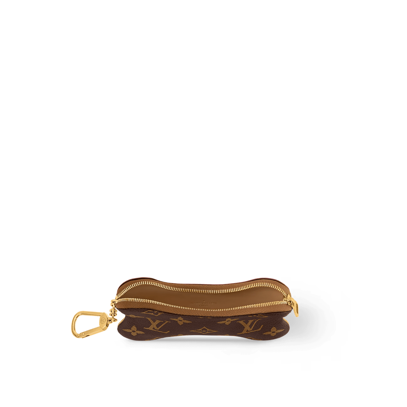 Designed by Pharrell Williams, the Bone Key Pouch is a revamped version of the House’s classic key pouch in the shape of a dog bone. Fashioned from Monogram canvas, this practical accessory can hold cash and cards as well as keys. A snap hook allows it to be attached to another bag.