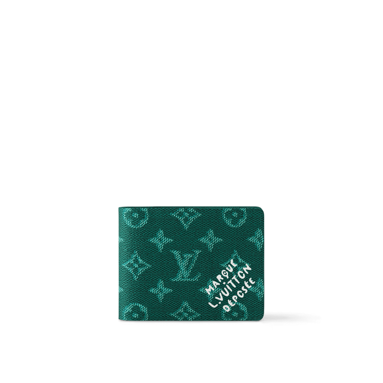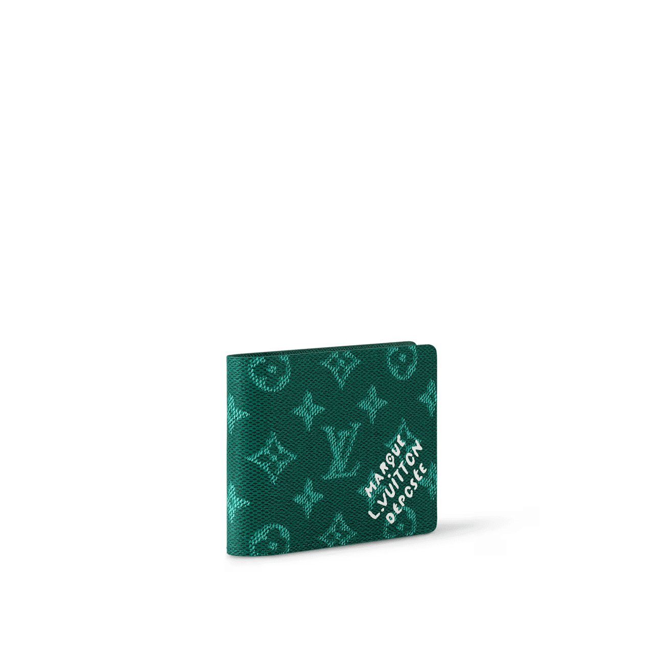 Pharrell William’s Monogram Heritage canvas brings a contemporary feel to the Multiple Wallet. This new version of the classic House pattern integrates details found on the original Damier motif, including the warp and weft pattern, as well as the “Marque L.Vuitton Déposée,” which is prominently displayed on the side of this wallet.