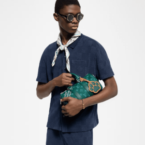 The Keepall Bandoulière 25 is a stylish little city bag made from Monogram Heritage canvas with matching-colored leather trim. Pharell Williams signs the bag with the “Marque L.Vuitton Déposée,” originally found on Damier canvas. It comes with a padded bag charm in the shape of a dog’s paw, embossed with a LV Initials.