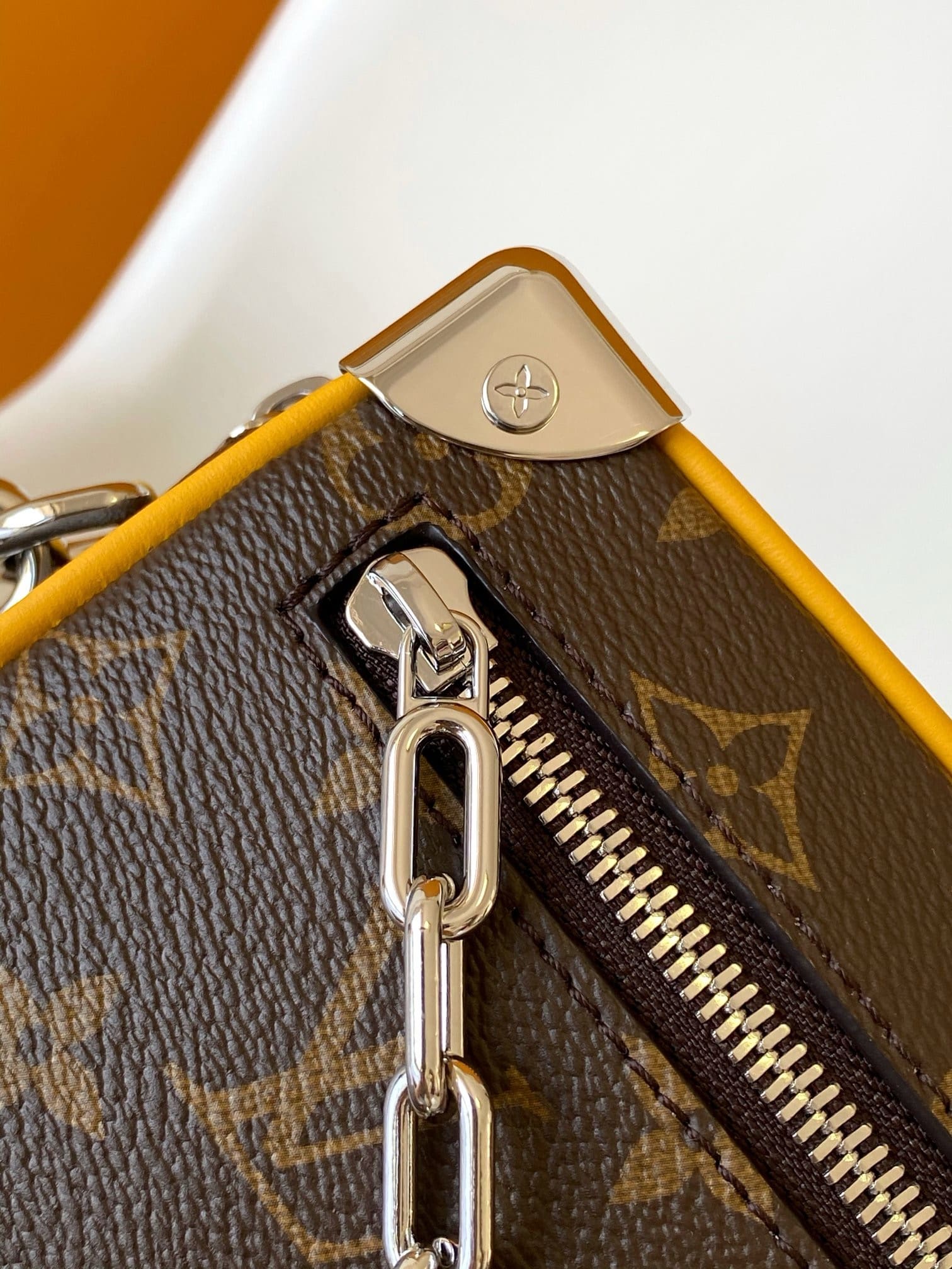 Made from Monogram Macassar canvas with silver-toned hardware and bright color on the piping and around the zipper on the front pocket, this Mini Soft Trunk is a perfect example of the House’s ability to innovate while never losing its roots. This city bag’s interior is lined with striped textile and features an inside flat pocket.