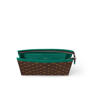 The versatile Pochette Voyage MM is made from Monogram Macassar coated canvas, with colored leather trim and a matching-colored lining. Ideal for organizing items inside a suitcase, it can also be carried as a clutch bag. The zipped closure, interior card slots, and inside flat pocket make it a practical pouch.