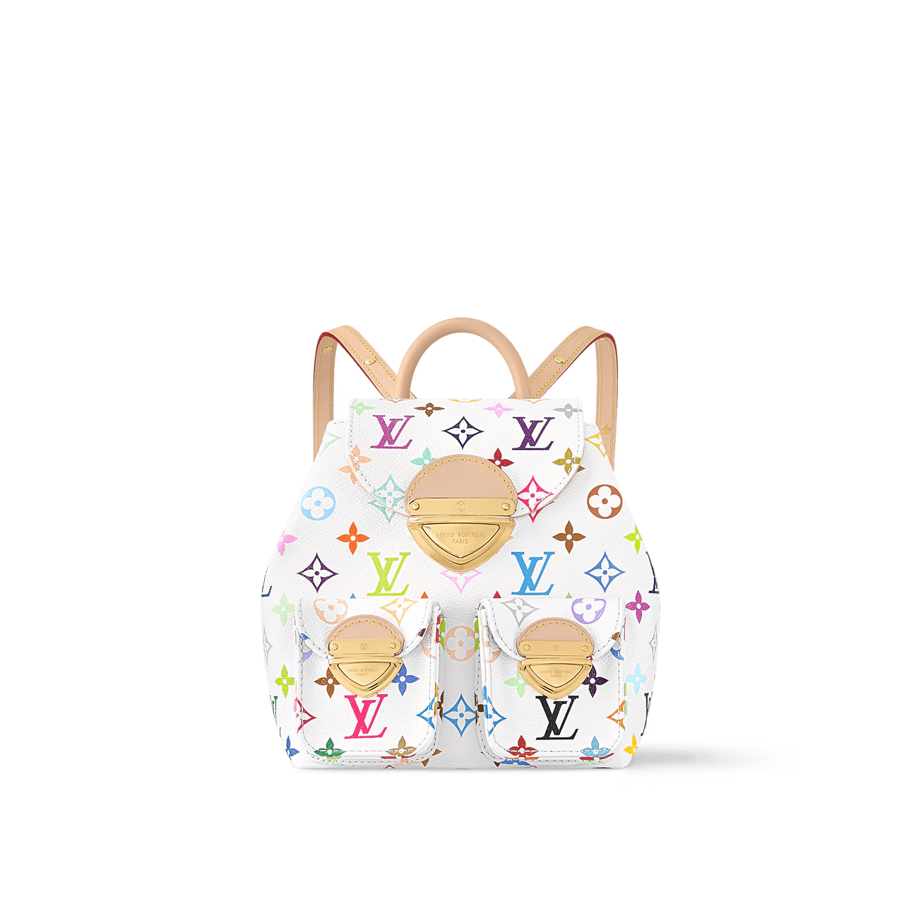 This Venice backpack is uplifted with a vibrant version of the iconic Monogram motif, which has been reimagined in the playful palette of renowned Japanese artist Takashi Murakami as part of the celebratory re-edition of the Louis Vuitton x Murakami collaboration. Crafted from coated canvas, the slim shoulder straps are highlighted in natural cowhide leather, while scaled-up golden tuck locks add a chic metallic accent to the flap and two outside pockets.