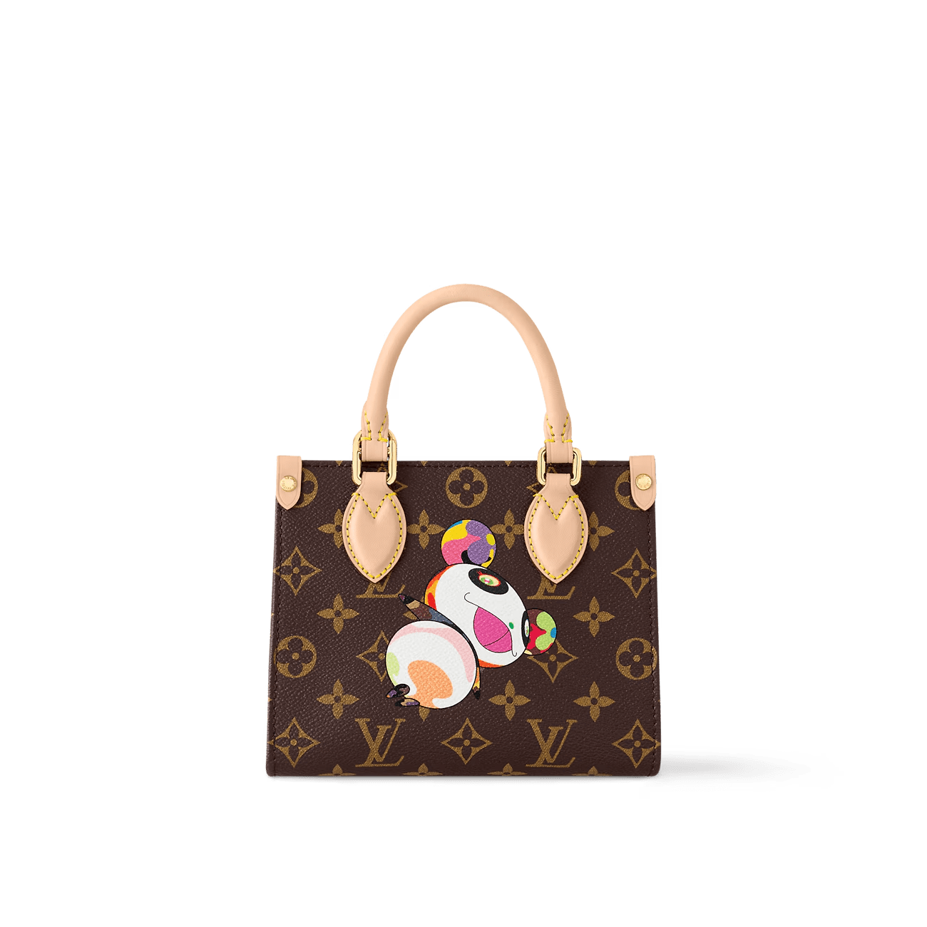 The Louis Vuitton x Takashi Murakami re-edition series interprets the exquisite version of the OnTheGo handbag with a playful touch. Monogram canvas and cowhide leather establish the brand’s classic style, and the cute and lively panda image of Takashi Murakami is transformed into the front and back prints. The detachable and adjustable shoulder strap provides a variety of carrying options, and the zippered inner patch pocket keeps personal items safe and secure.