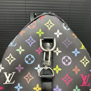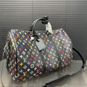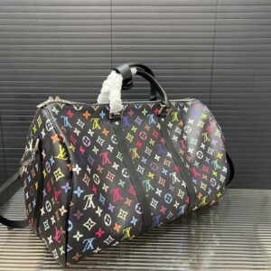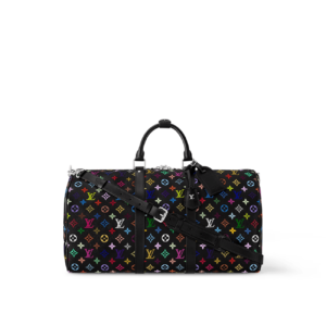 The iconic Keepall Bandoulière 50 makes a bold signature statement in Monogram coated canvas that has been playfully reimagined with vibrant rainbow tones inspired by the work of world-renowned Japanese artist Takashi Murakami. Sleek black leather bands add structure to the roomy cabin-sized design, complete with elegant top handles and a removable, adjustable strap. A padlock, a name tag and a keybell complete the look with a nod to the House’s travel heritage.