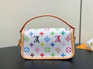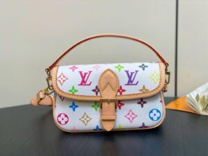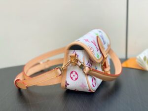 This Nano Diane handbag is from the Louis Vuitton x Takashi Murakami collaboration series, and it releases fun with colorful Monogram patterns. The dazzling metal parts and cowhide trims highlight the classic style, the detachable and adjustable leather shoulder strap is convenient for crossbody, and the exquisite configuration can store mobile phones, short wallets and other daily necessities.