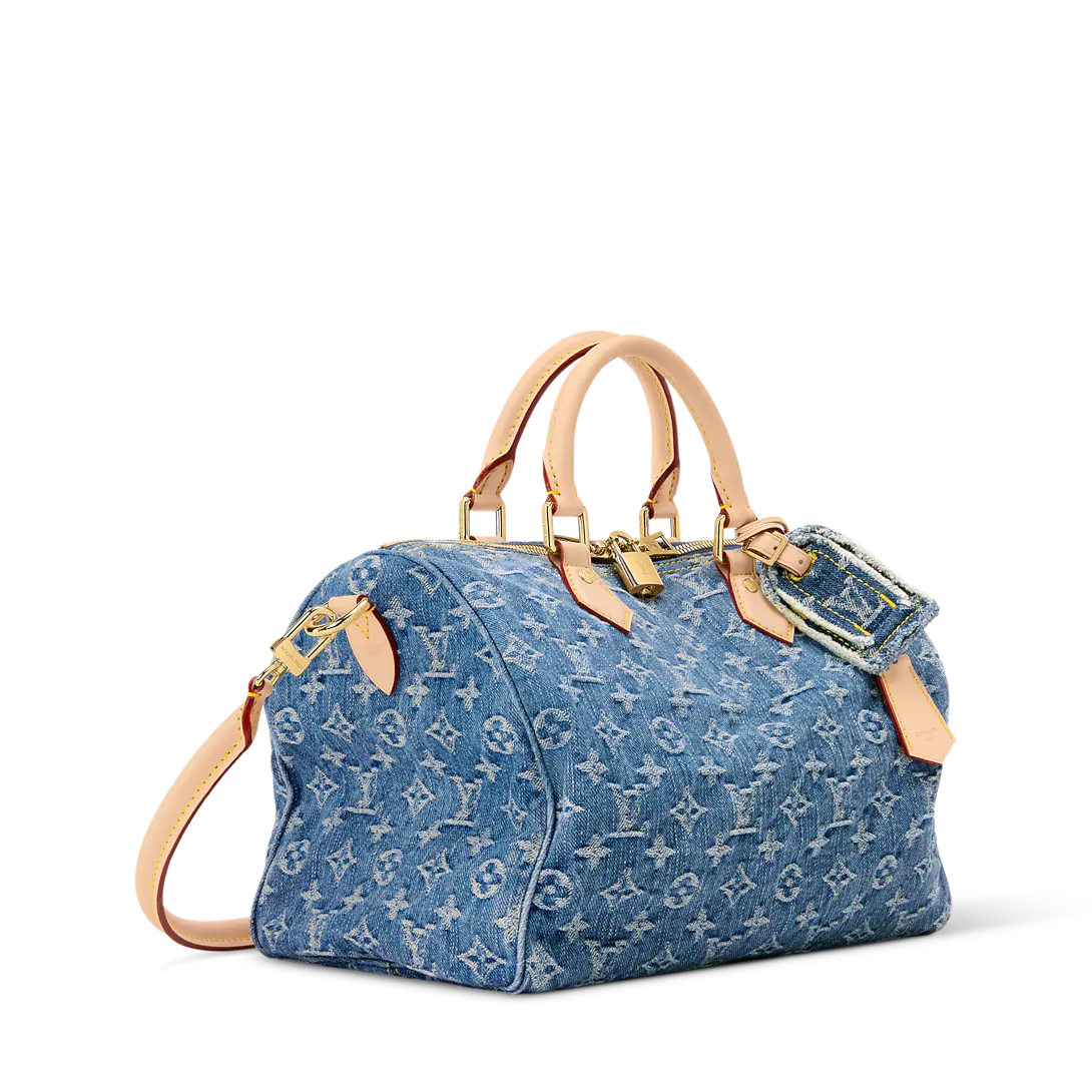 This edition of the Speedy Soft 30 is updated in Blue Denim, adding a contemporary spin to the classic design. Patterned with the House’s iconic Monogram, it is trimmed with a contrasting leather handle, removable strap and a decorative keybell embossed with the Louis Vuitton signature. It is generously sized to fit the essentials, plus a tablet and book, making it ideal for weekends or commutes.