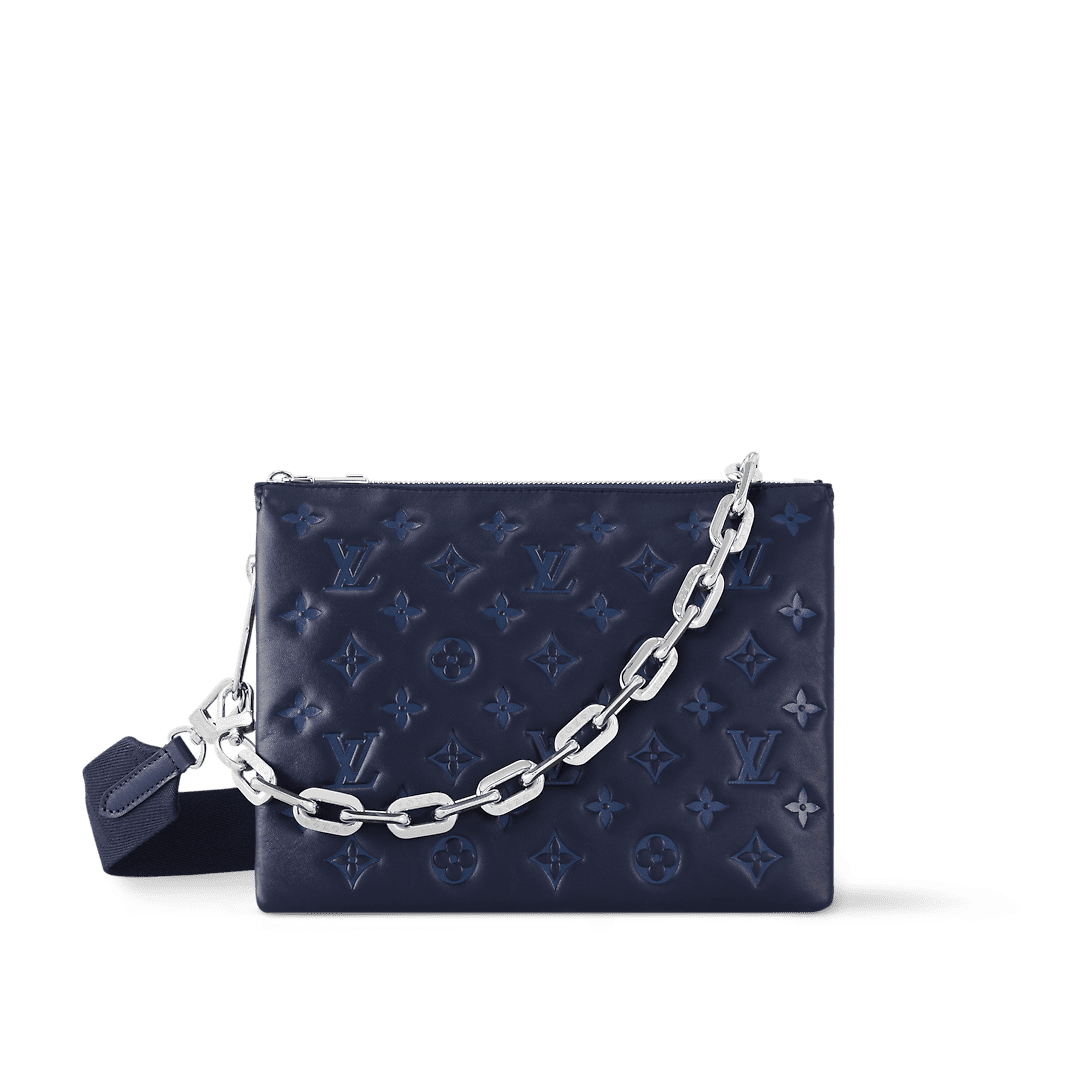 Fashioned from puffy lambskin and accessorized with a chunky silver-color chain, this Coussin PM handbag is part of the Fall-Winter 2020-21 Collection. Its bright, vibrant colorway is Nicolas Ghesquière’s translation of a bold, joyful feminine attitude. The Coussin can be worn cross-body with the strap, short-shoulder style on its chain, or tucked under the arm.