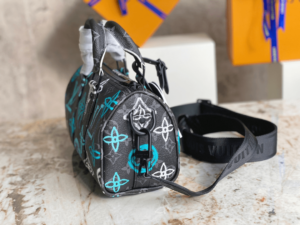 M21399 Printed Pillow Bag Speedy Series This Keepall Bandoulière 25 handbag is made of Monogram Eclipse canvas, with a spray-painted Monogram pattern that exudes a street art atmosphere. The compact design allows for urban mobility, while the side straps and leather nameplate are signature elements of the Keepall travel bag. Dimensions 25 x 15 x 11 cm (length x height x width)