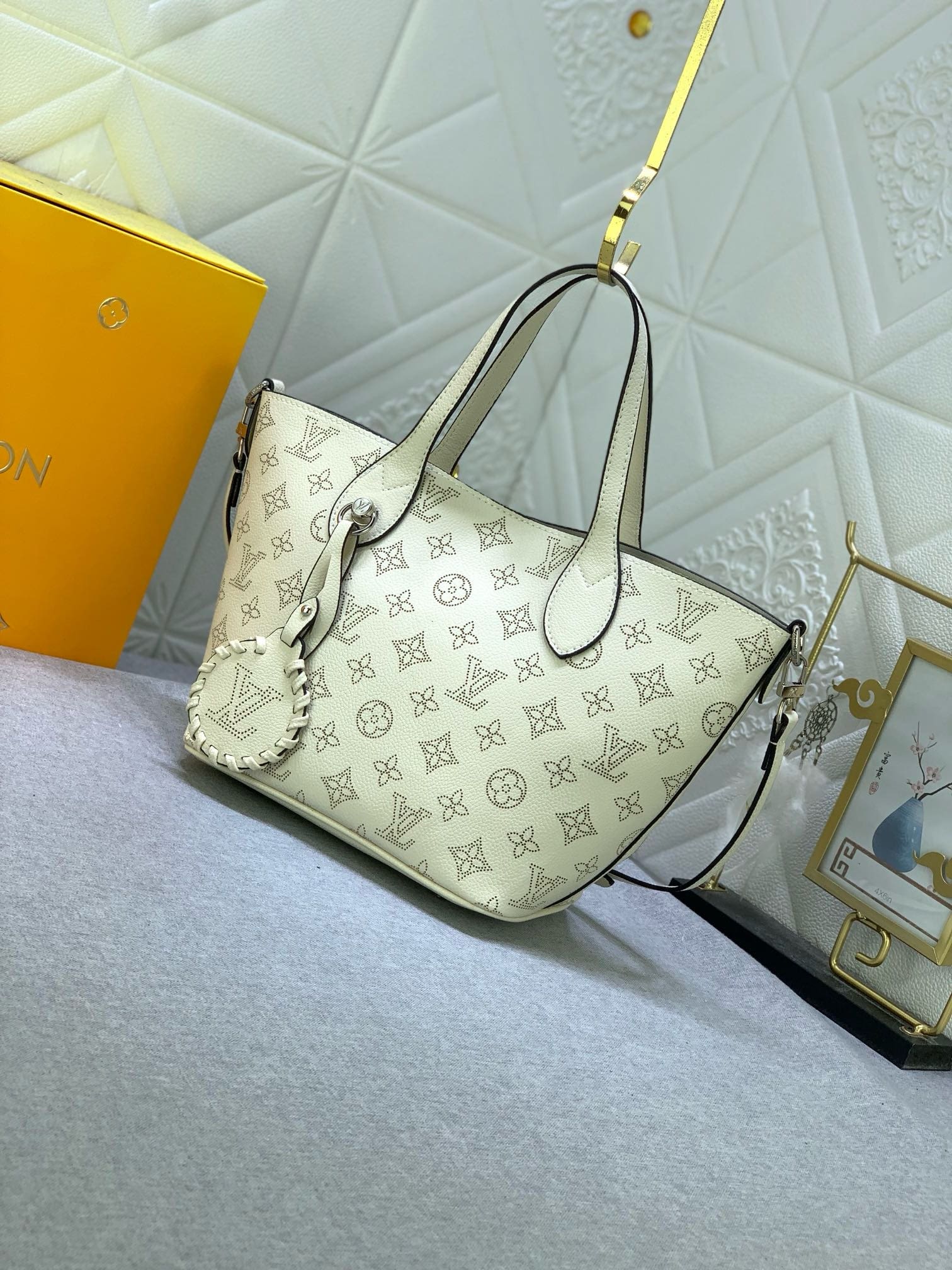 The Blossom PM tote in Mahina perforated calfskin leather combines functionality with casual sophistication. The interior compartment, with its removable zipped pocket, has room for daily essentials. There are two handles for hand or elbow carry as well as an adjustable and removable leather strap for shoulder and cross-body wear.