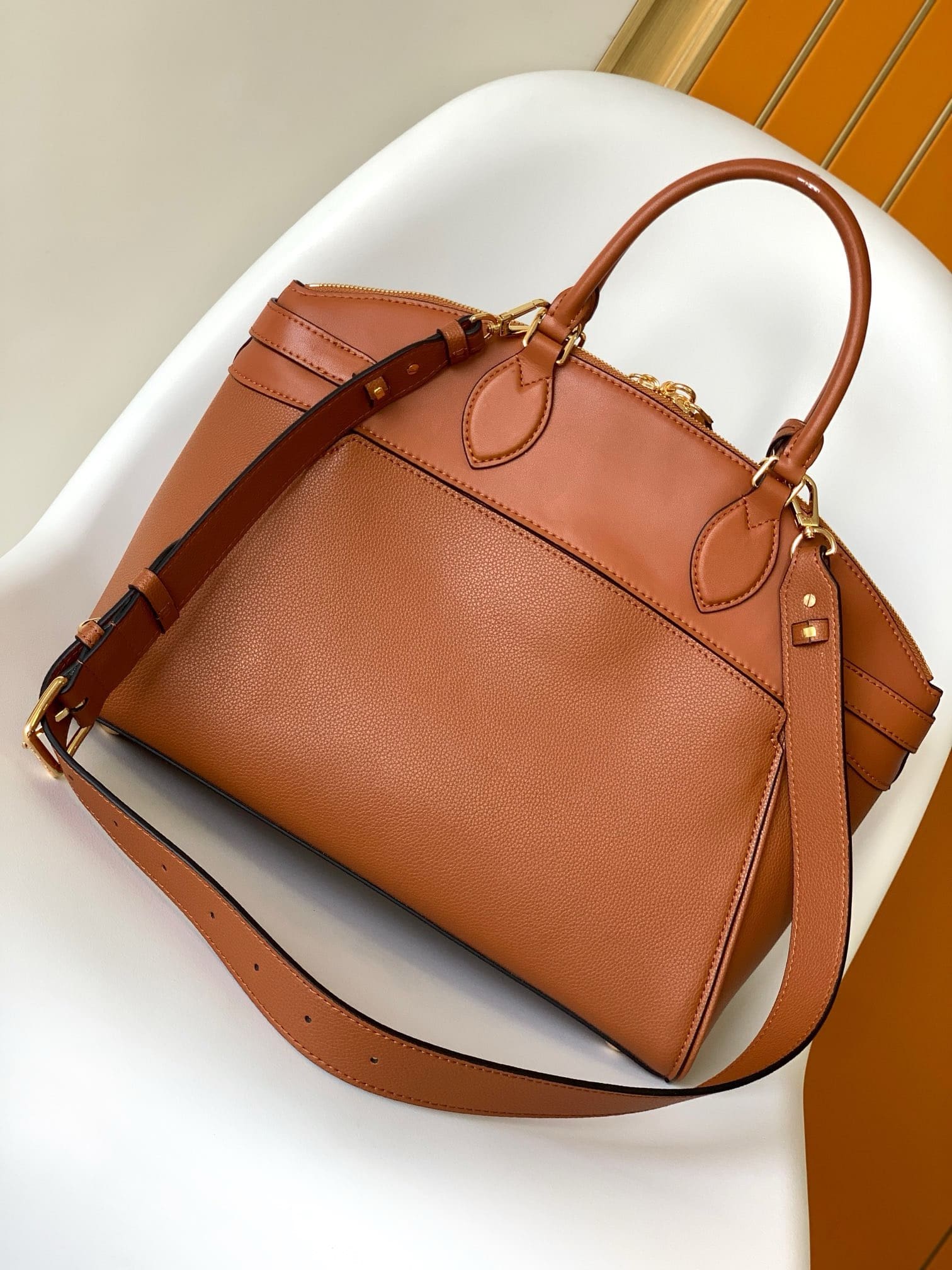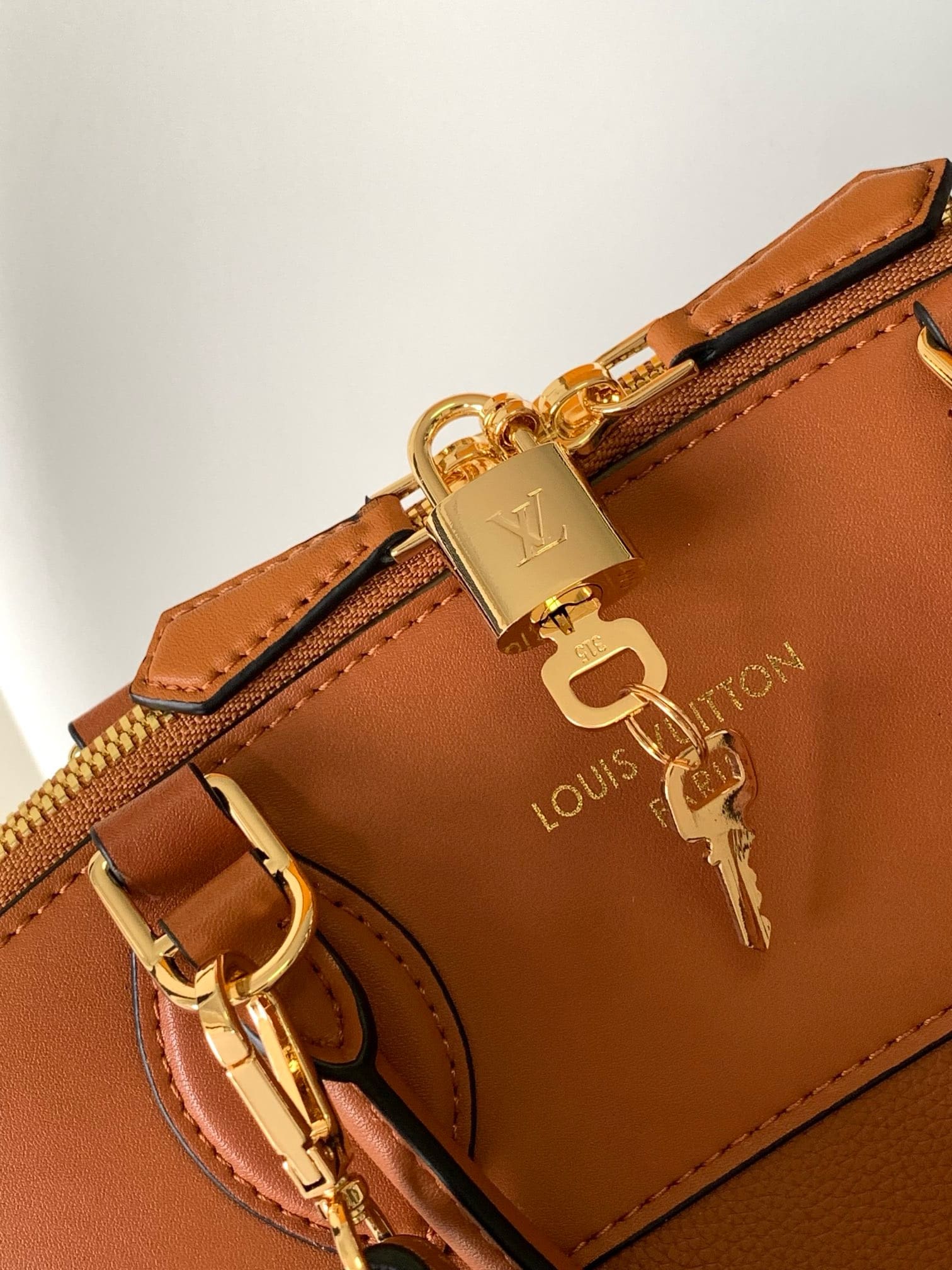 Sophisticated and functional, the Vendôme MM bag presents a refined mix of grained Taurillon leather and smooth calfskin, with gold-finish buckles and hardware. Emblematic House touches include a padlock, key bell and a hot-stamped Louis Vuitton signature. Fitted with articulated top handles and a detachable strap, the tote offers a variety of carry options.