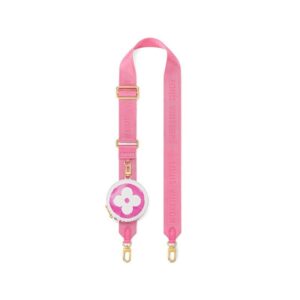 The OnTheGo PM is a handbag-sized tote in cream-color canvas with a pastel-color Giant Monogram pattern. The pattern is paired with trim and top handles in a dense motif of Monogram Flowers inspired by the traditional azulejo ceramics of Portugal. A removable and adjustable strap enables shoulder wear.