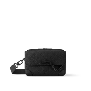 Made from Taurillon Monogram embossed leather, the Steamer Messenger applies design cues from the Steamer bag to the messenger bag. Specifically, the reinforced corners and the chain and pin found on the Steamer. Easy to carry thanks to its adjustable strap, it has a spacious compartment and a front pocket with a magnetic flap closure.