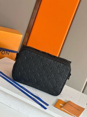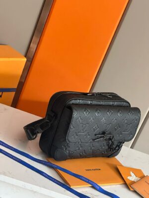 Made from Taurillon Monogram embossed leather, the Steamer Messenger applies design cues from the Steamer bag to the messenger bag. Specifically, the reinforced corners and the chain and pin found on the Steamer. Easy to carry thanks to its adjustable strap, it has a spacious compartment and a front pocket with a magnetic flap closure.