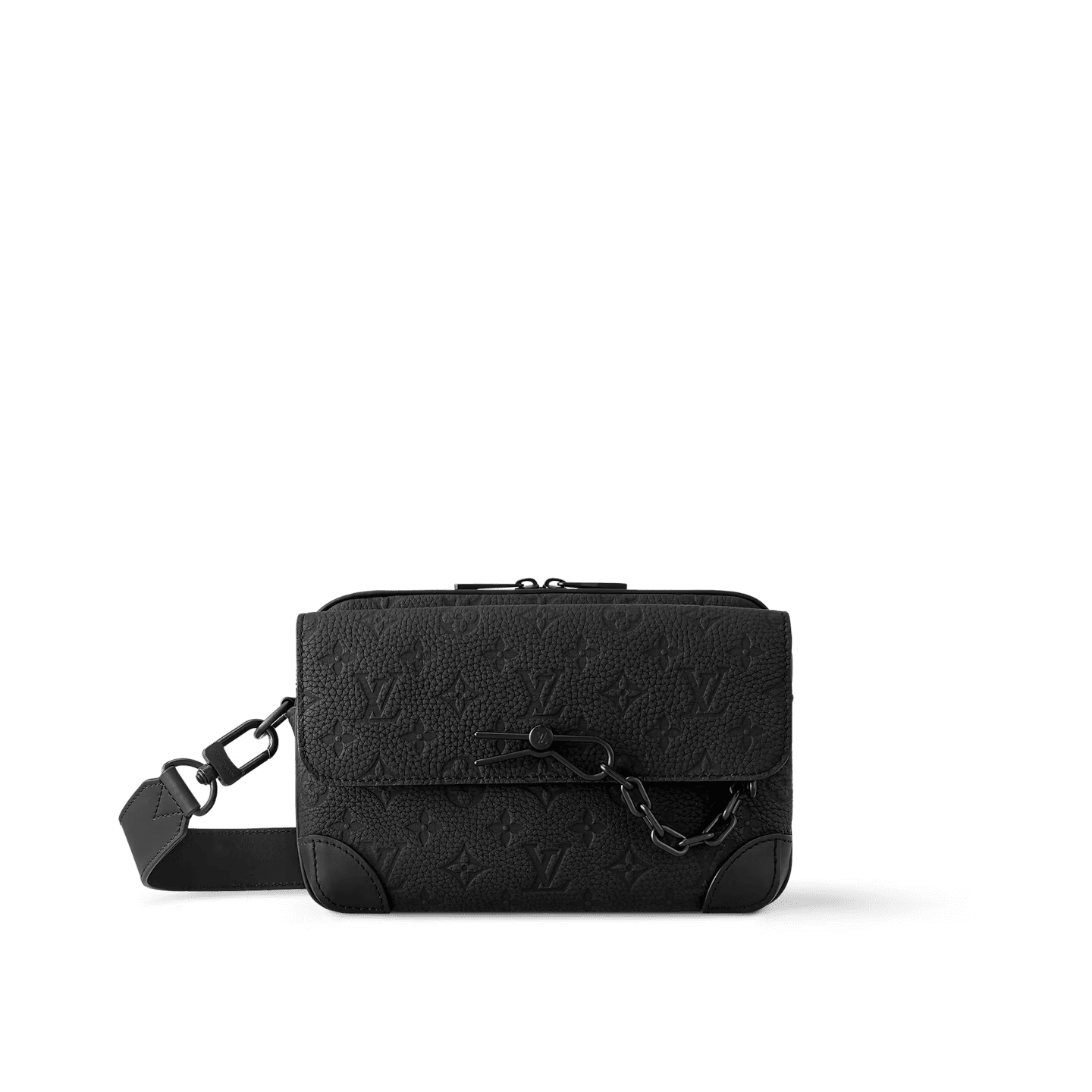 Made from Taurillon Monogram embossed leather, the Steamer Messenger applies design cues from the Steamer bag to the messenger bag. Specifically, the reinforced corners and the chain and pin found on the Steamer. Easy to carry thanks to its adjustable strap, it has a spacious compartment and a front pocket with a magnetic flap closure.
