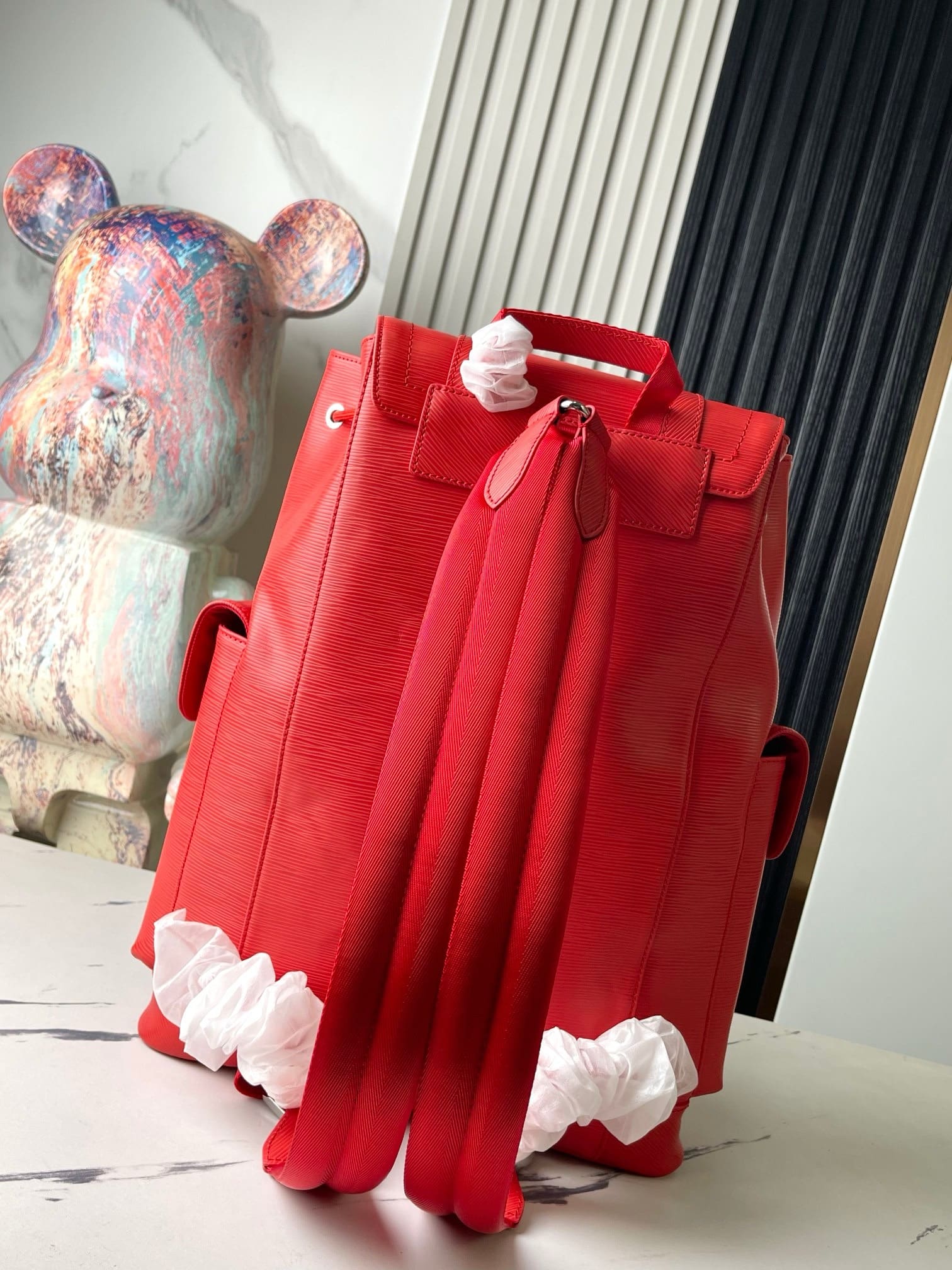 The House’s classic backpack, the Christopher MM looks stunning in bright-red Epi XL grained leather. The textured embossing is larger than on regular Epi and enhances the leather’s strength, making it less prone to wear and tear. This backpack is signed “Louis Vuitton” on the two side pocket.