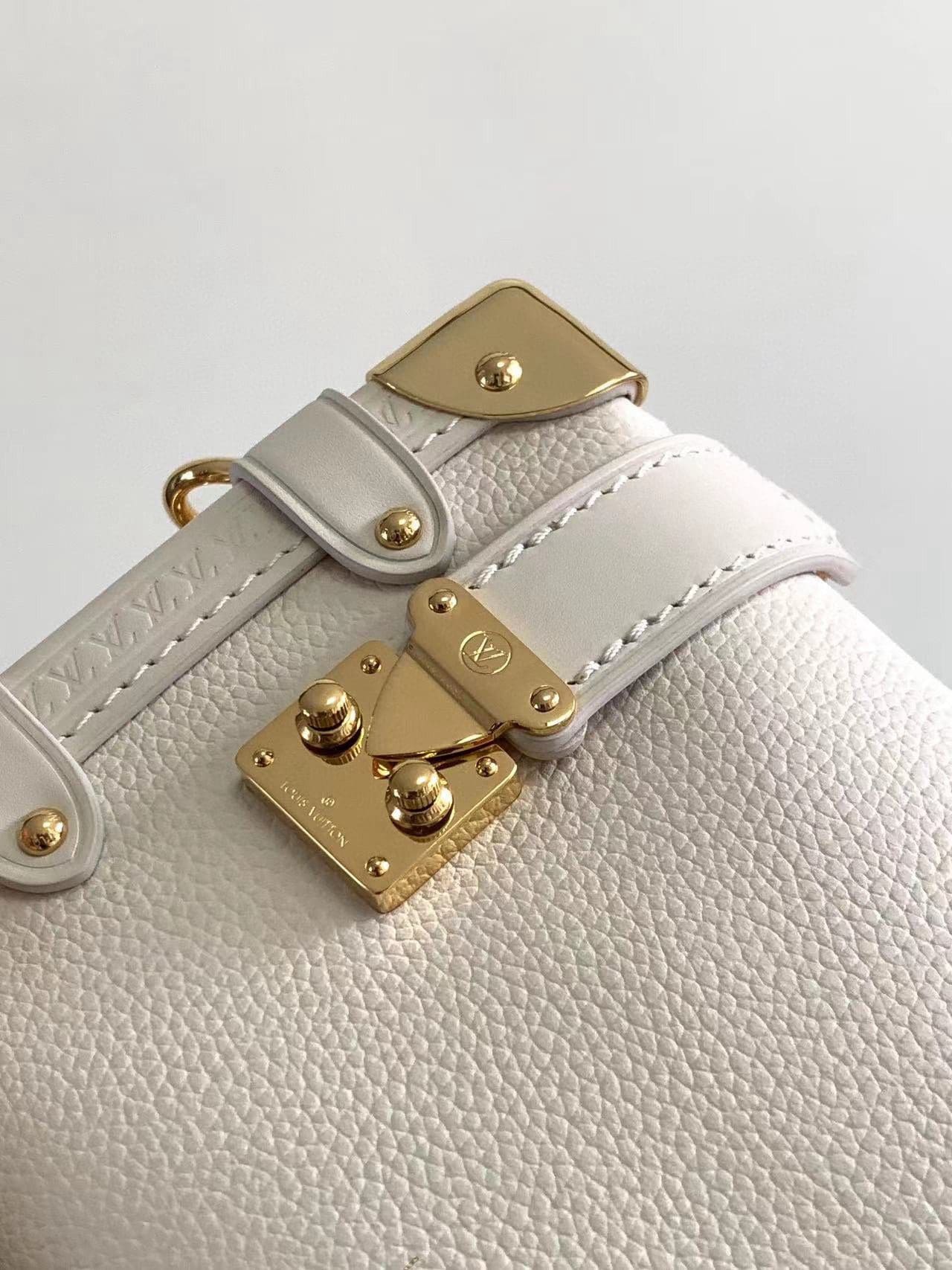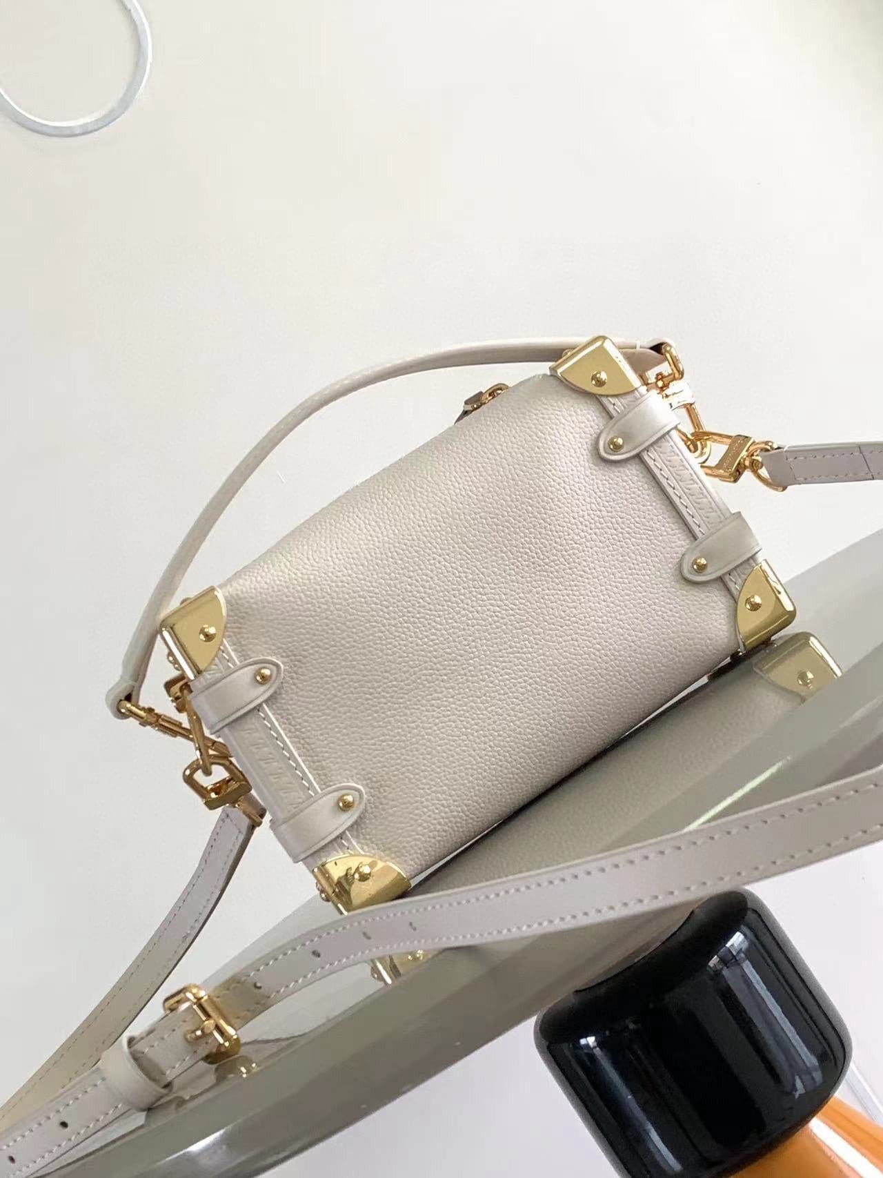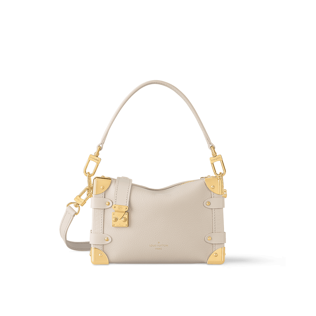 Crafted from grained calfskin leather with a gold-color S-lock and corners, the Side Trunk PM takes its inspiration from the House’s vintage trunks. A detachable leather handle and a removable and adjustable leather strap give carry options. The Side Trunk fits a wallet, large smartphone, keys, and lipstick.