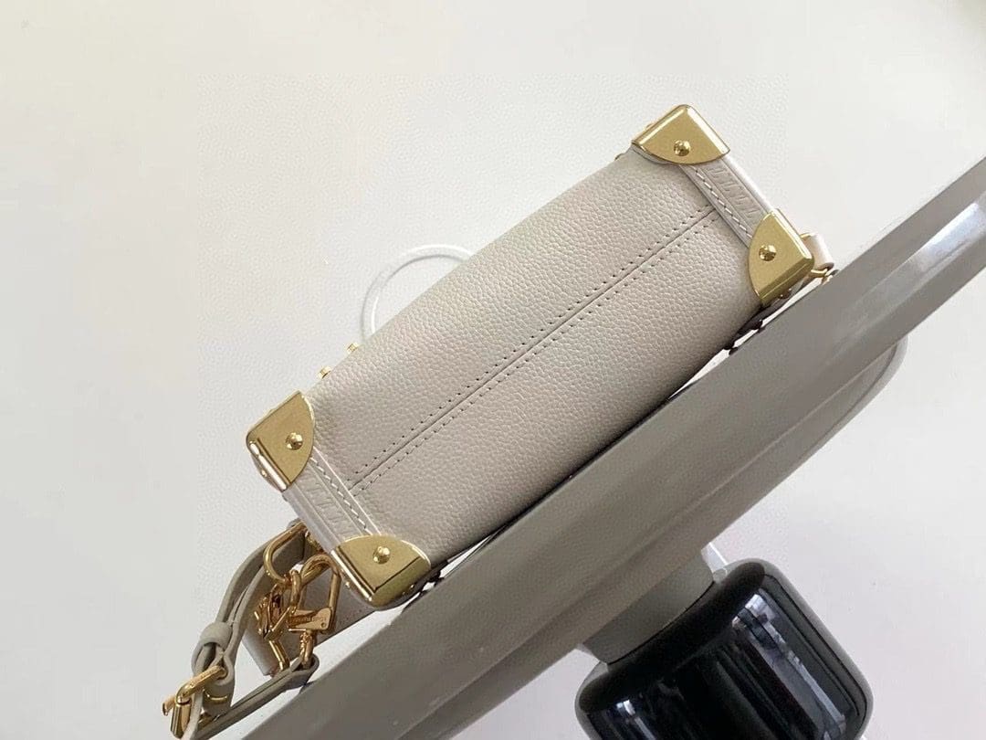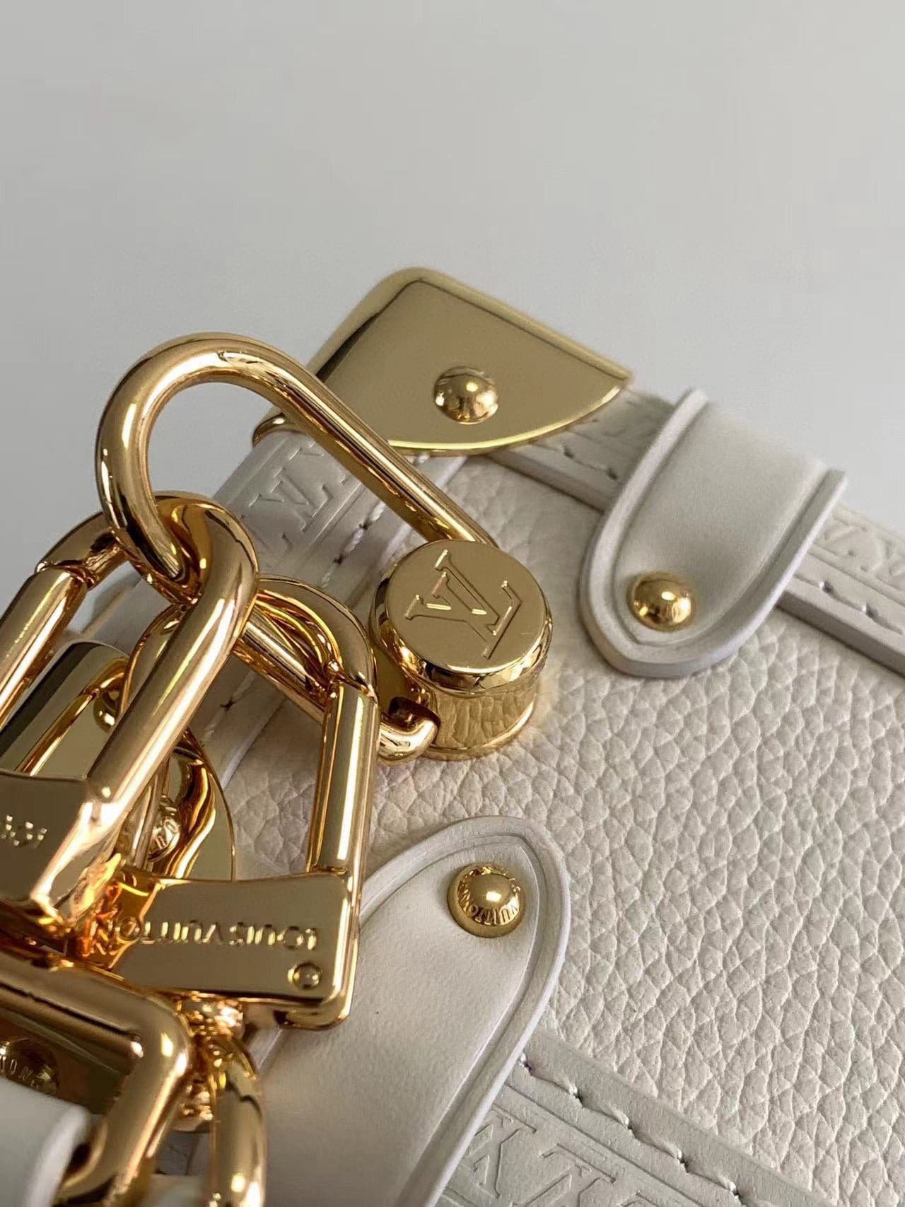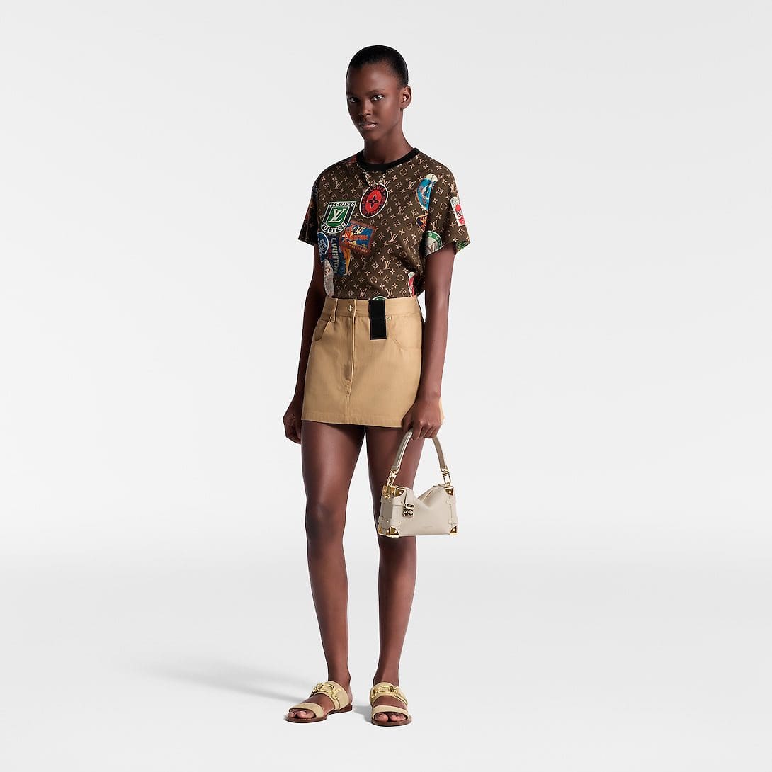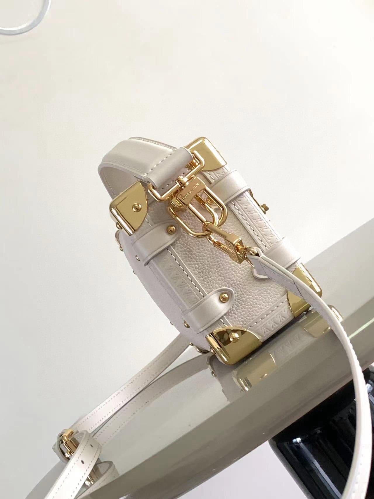 Crafted from grained calfskin leather with a gold-color S-lock and corners, the Side Trunk PM takes its inspiration from the House’s vintage trunks. A detachable leather handle and a removable and adjustable leather strap give carry options. The Side Trunk fits a wallet, large smartphone, keys, and lipstick.